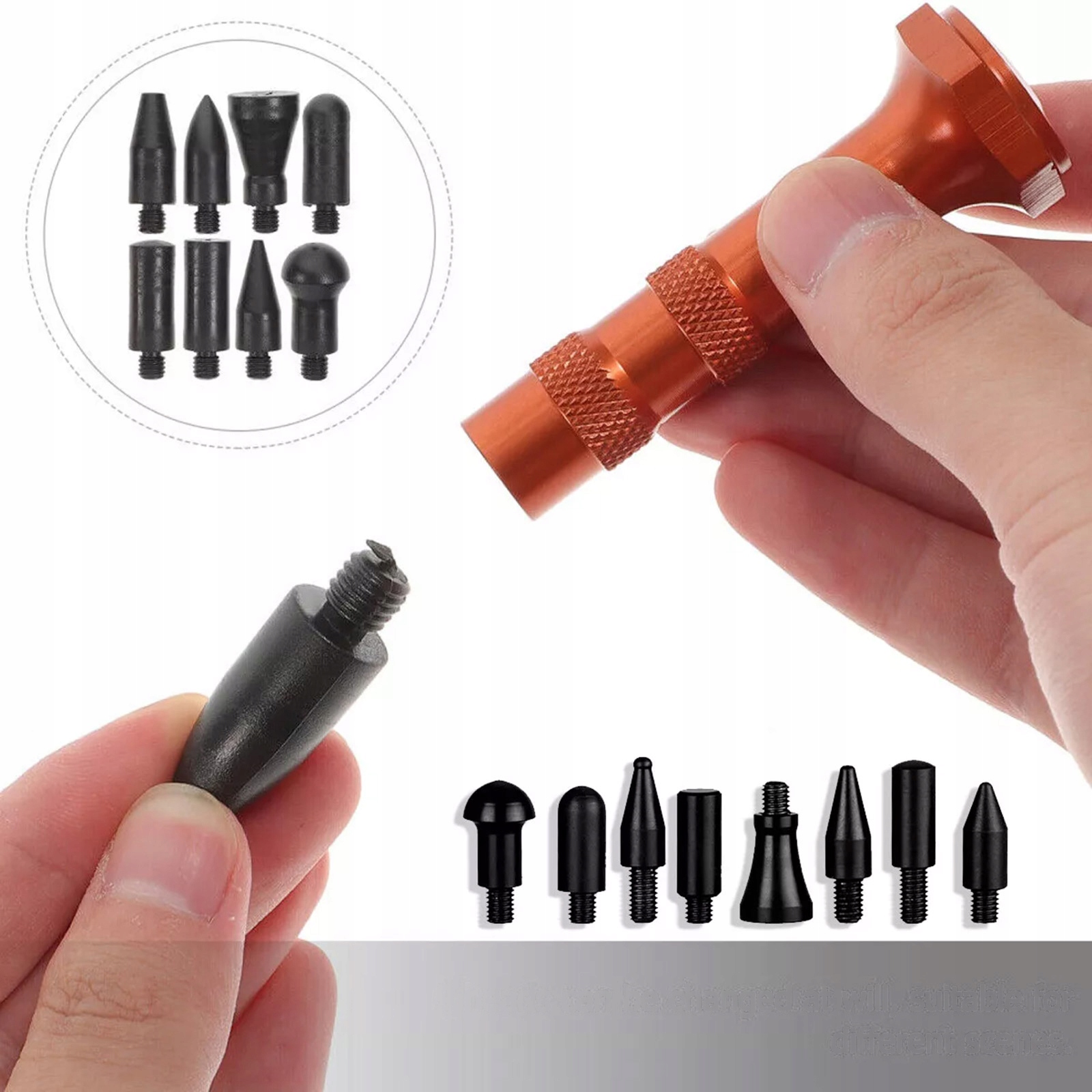 Дозволяє легко дістатися до важкодоступних вм’ятин. Швидкий ремонт опуклостей і нерівних вм'ятин. Поверхня не пошкоджена. Знімна гумова головка не пошкоджує поверхню та є зносостійкою.