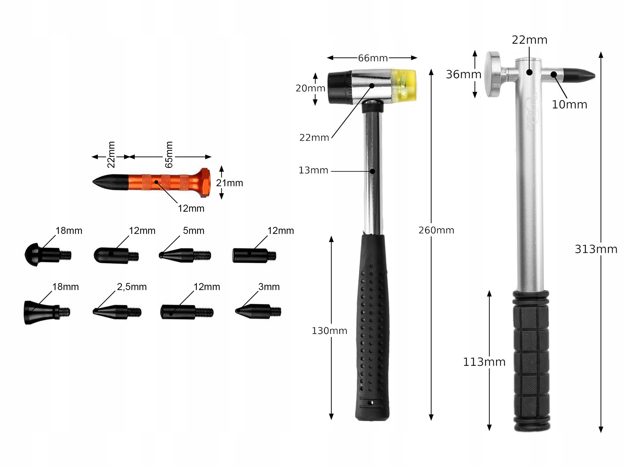 Інерційний молоток з грибами, ідеально підходить для вилучення вм'ятин з кузова автомобіля після граду, актів вандалізму, зіткнення/ударів без необхідності лаку.