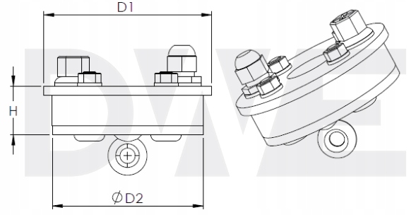 Прохідна оголовка, призначена для труби свердловини діаметром 110 мм та напірного шланга глибинного насоса діаметром 32 мм.