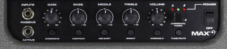 - Трисмуговий еквалайзер із перемикачами Overdrive, Contour, Mid-Shift, Bright і Kosmos-C
