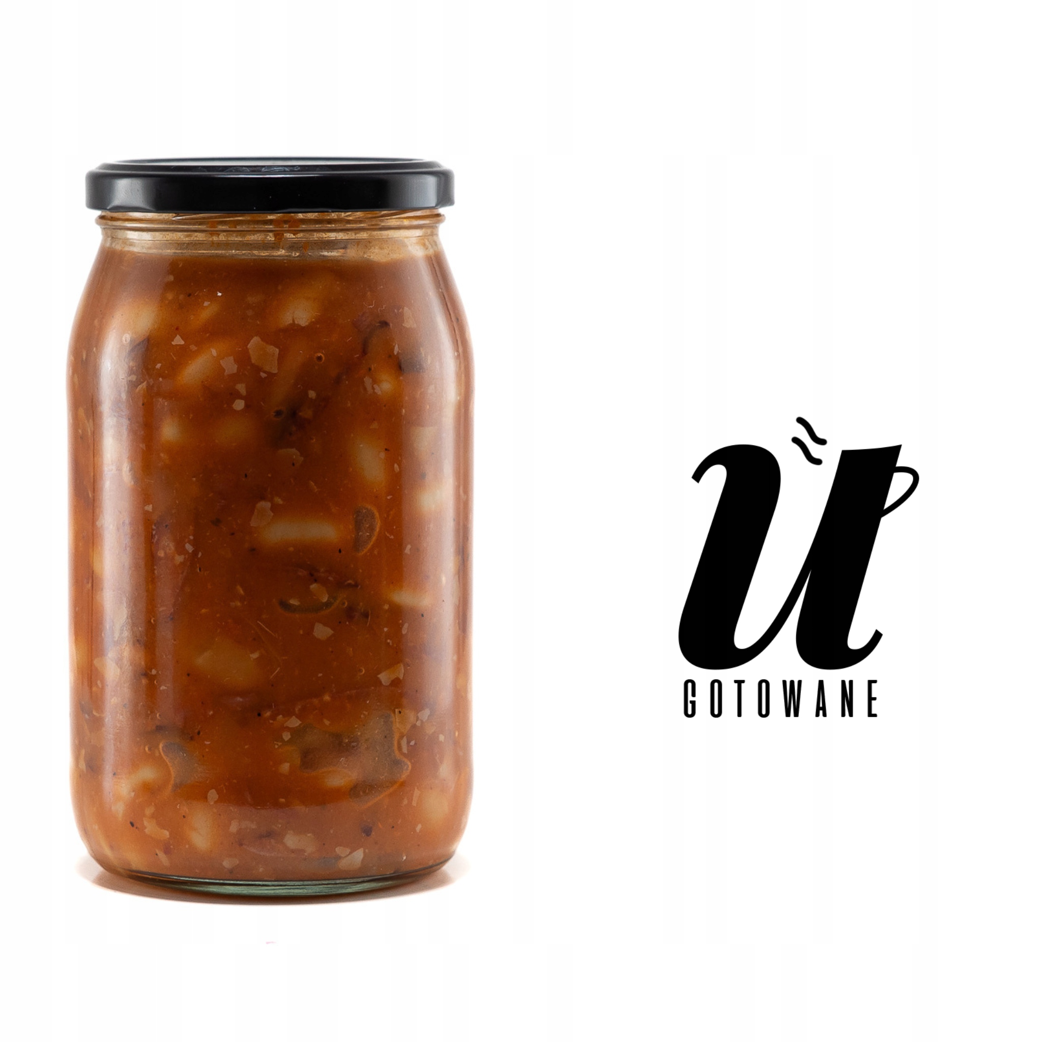 Інгредієнти: помідори, ковбаса, квасоля , бекон копчений, цибуля, томатний концентрат (28-30%, томати), сіль, майоран, часник, паприка копчена, лист лавровий, перець гострий, перець запашний, перець.