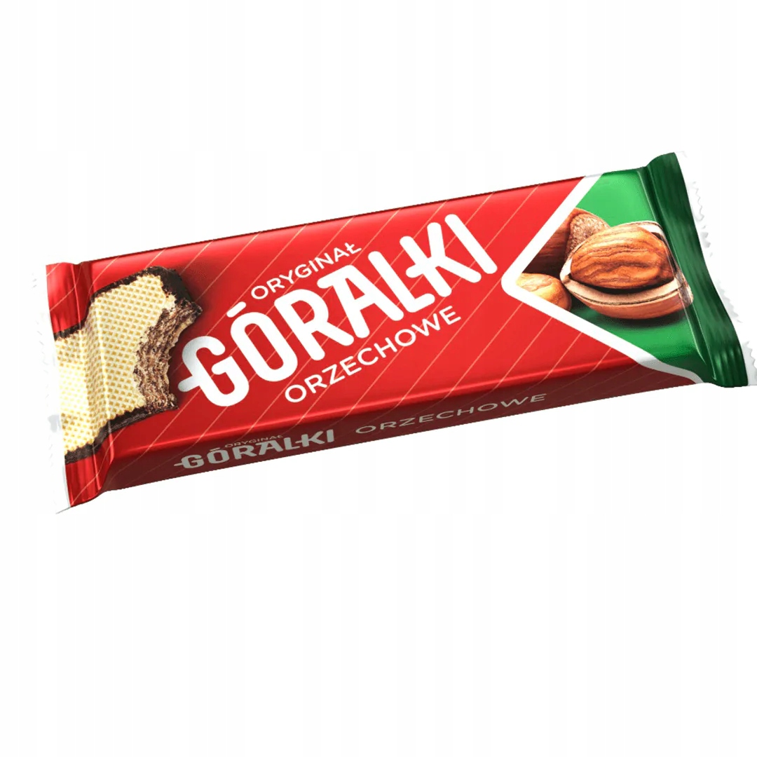 Ідеально підходить для любителів горіхового смаку - печиво Góralki, горіхові вафлі 45 г, це смачна закуска, ідеальна для будь-якого випадку. Ніжні вафлі, хрусткі горіхи та неповторний смак порадують кожного ласуна. Ідеально підходить для дороги, школи, роботи або просто як солодке задоволення протягом дня. Спробуйте зараз і насолодіться насиченим горіховим смаком!