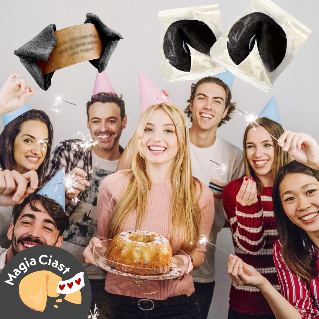 печиво з ворожінням 50 ПК. У своїх руках ви зберігаєте крихке чорне печиво з ніжним ароматом ваніль, отриманою від коханої людини, яка ховає щось більше, ніж просто унікальний смак - крихітна карта з надихаючим ворожінням. Одне речення, яке може заохочувати, посміхнутися та позитивну енергію на цілий день. Скажи своїх близьких: "Я думаю про тебе", "Я бажаю тобі мрій" або "Кожен день може принести щось незвичне" найсолодшим і найстильнішим способом.