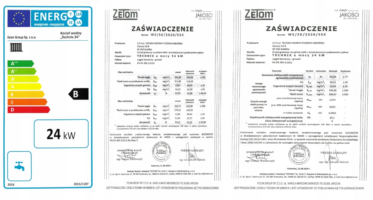 Цей продукт був протестований у двох незалежних державних лабораторіях, і кожна з них отримала сертифікат відповідності котлу класу 5 (PN-EN 303-5: 2012)та екодизайну ( 2020- 2009/125/EC). Завдяки цьому ви отримаєте державну субсидію на придбання пристрою.