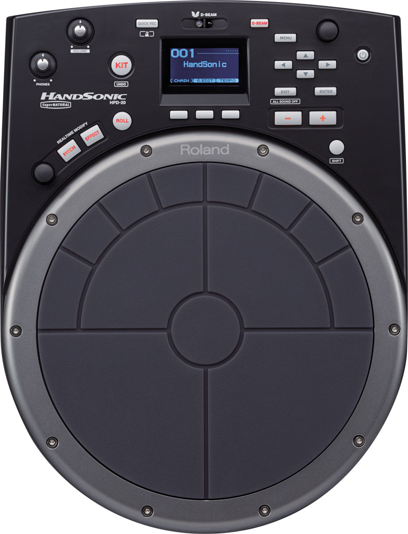 Виходячи за рамки типових контролерів для педів, HandSonic HPD-20 є вдосконаленим ручним ударним інструментом, який пропонує вражаючий рівень експресії. Його 13 чутливих до швидкості педів різних розмірів розташовані по колу для максимальної ергономіки. Звичайно, звук створюється, коли ви натискаєте на педи, але торкання або натискання на них може приглушити або вимкнути інші звуки, а також змінити їх висоту та інші параметри. Таким чином ви можете грати на традиційних техніках, таких як акустичні ударні інструменти, отримуючи динамічні та унікальні структури, що підходять для електронної танцювальної музики та інших сучасних стилів. Дві найбільші педи створюють природні зміни звуку залежно від того, куди ви по них вдаряєте. Додатковий контроль над звуком забезпечується кнопкою Roll, регулятором Realtime Modify і відомим контролером D-BEAM, який дозволяє вражаючим чином керувати ефектами, помахуючи рукою в повітрі.