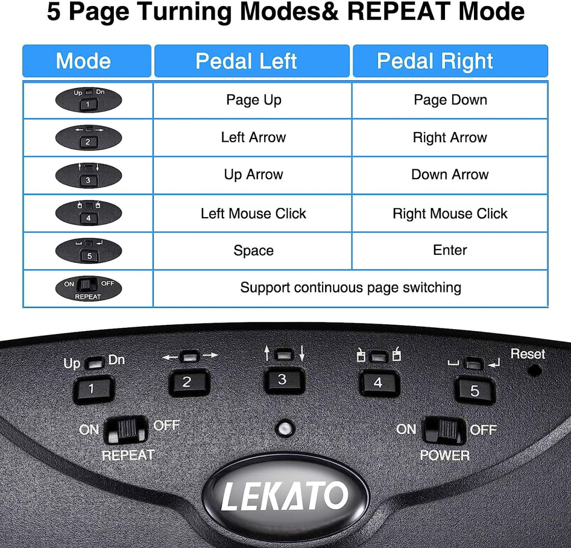 Педаль повороту сторінок Bluetooth LEKATO має діапазон Передача Bluetooth на відстані до 10 м і доступна для систем IOS/Windows/Android, що робить його ідеальним контролером для iPad/смартфона/планшета/ПК для керування, читання, прокручування текстів пісень, гітарних табулаторів або телесуфлера.