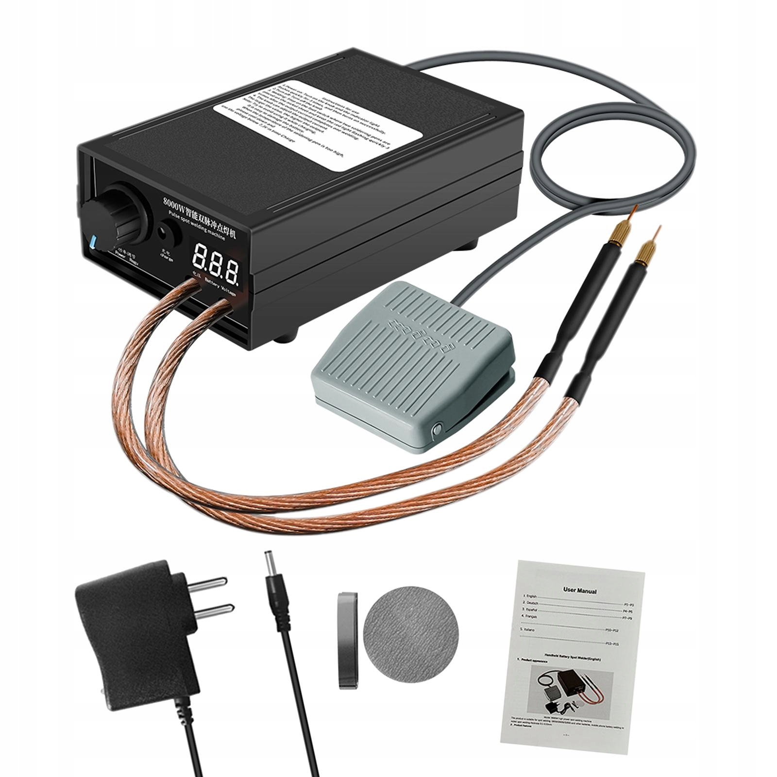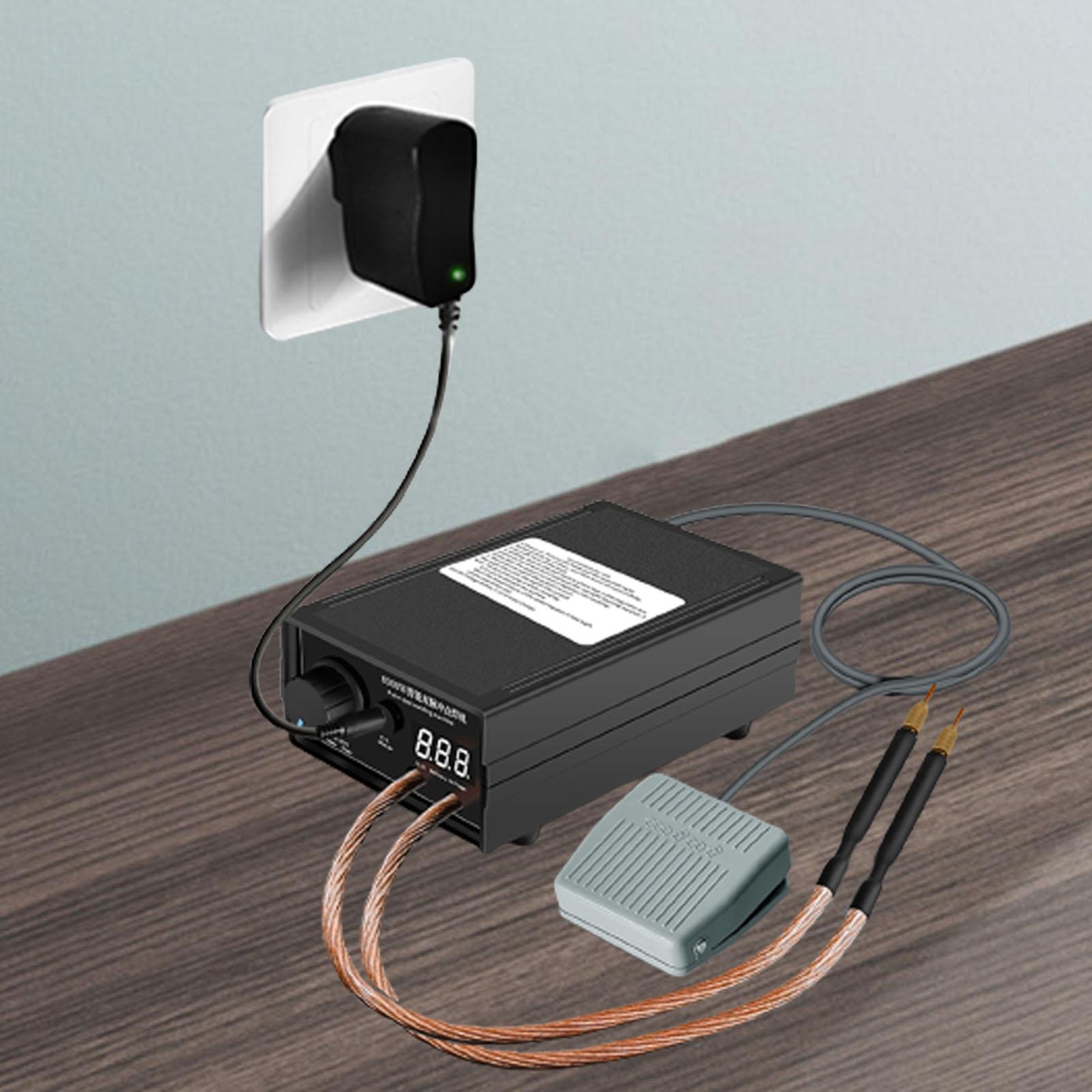 Зварювальна машина з педалями: покладіть дві пайки на пластину нікелю, натисніть плитку з нікелю, натисніть перемикач ноги та утримуйте її, червоне світло промайне 3 рази, вихідне електроенергію та покриття зварювання. Знімна паяльна ручка 47 см, зручна для гнучкого використання.