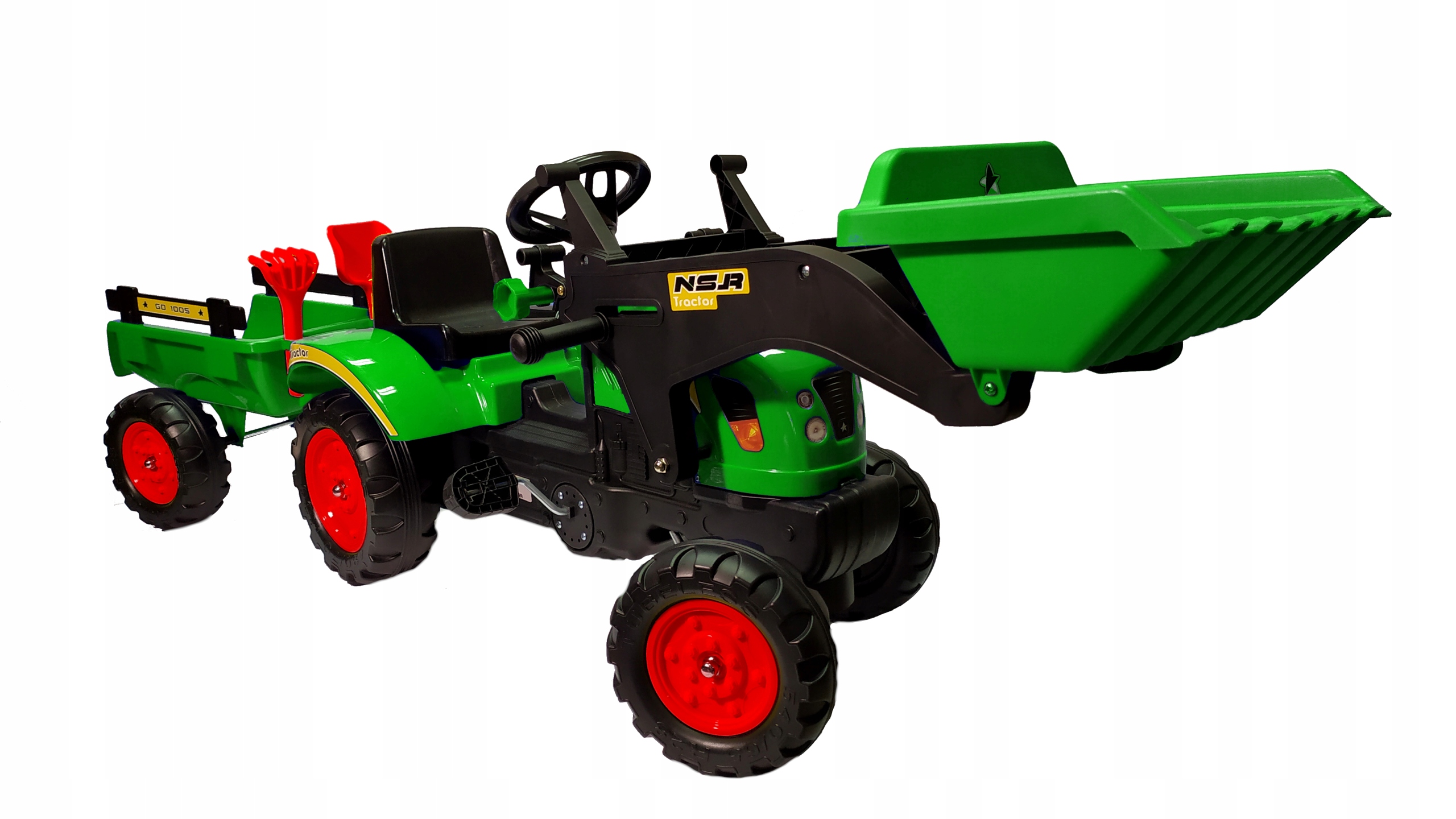 Педальний трактор з пересувним навантажувачем і причепом - ідеальний подарунок для дитини.