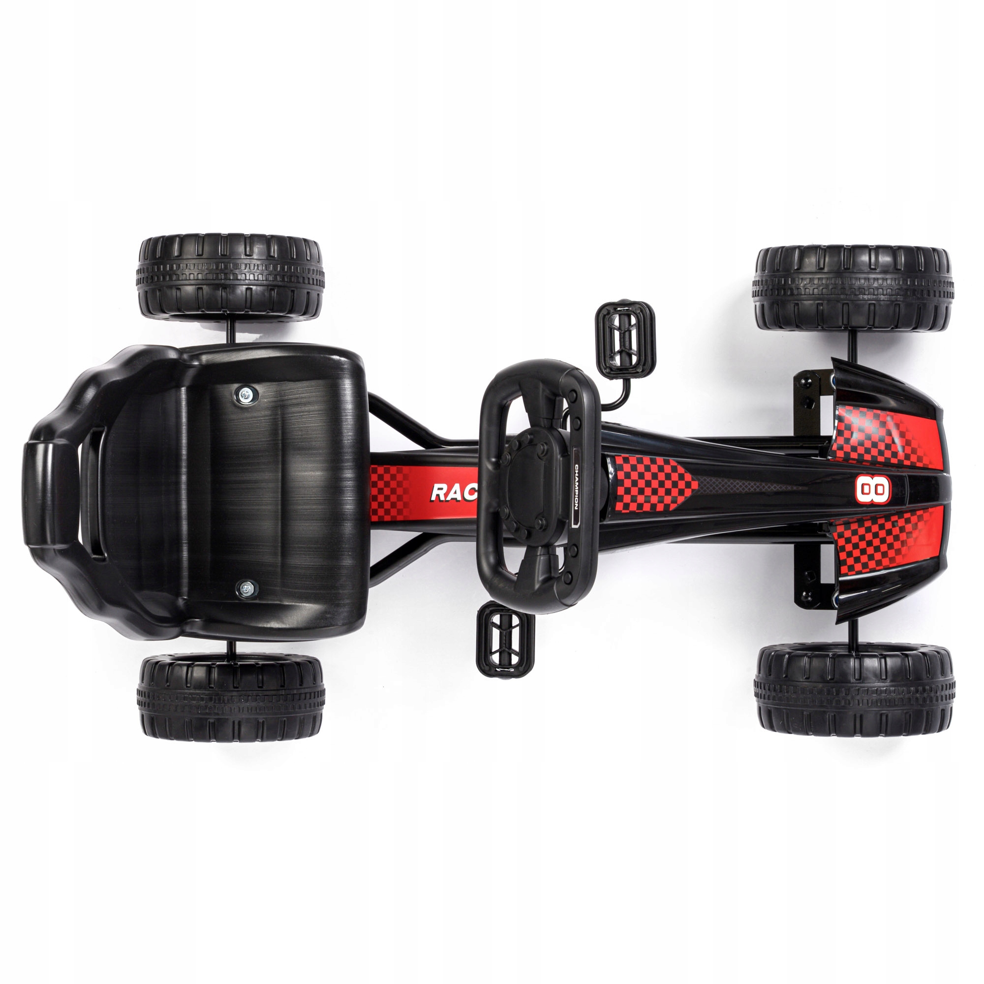 Легкий дизайн, зроблений у спортивному стилі, надає транспортному засобу реалістичний вигляд гонщика. Сталевий каркас стійкий до ударів та механічних пошкоджень. його максимальна вантажопідйомність становить 30 кг. Повністю побудований ланцюг -дозволяє безпечно рухатися вперед і назад за допомогою педалей з поверхнею, що не має слизу.