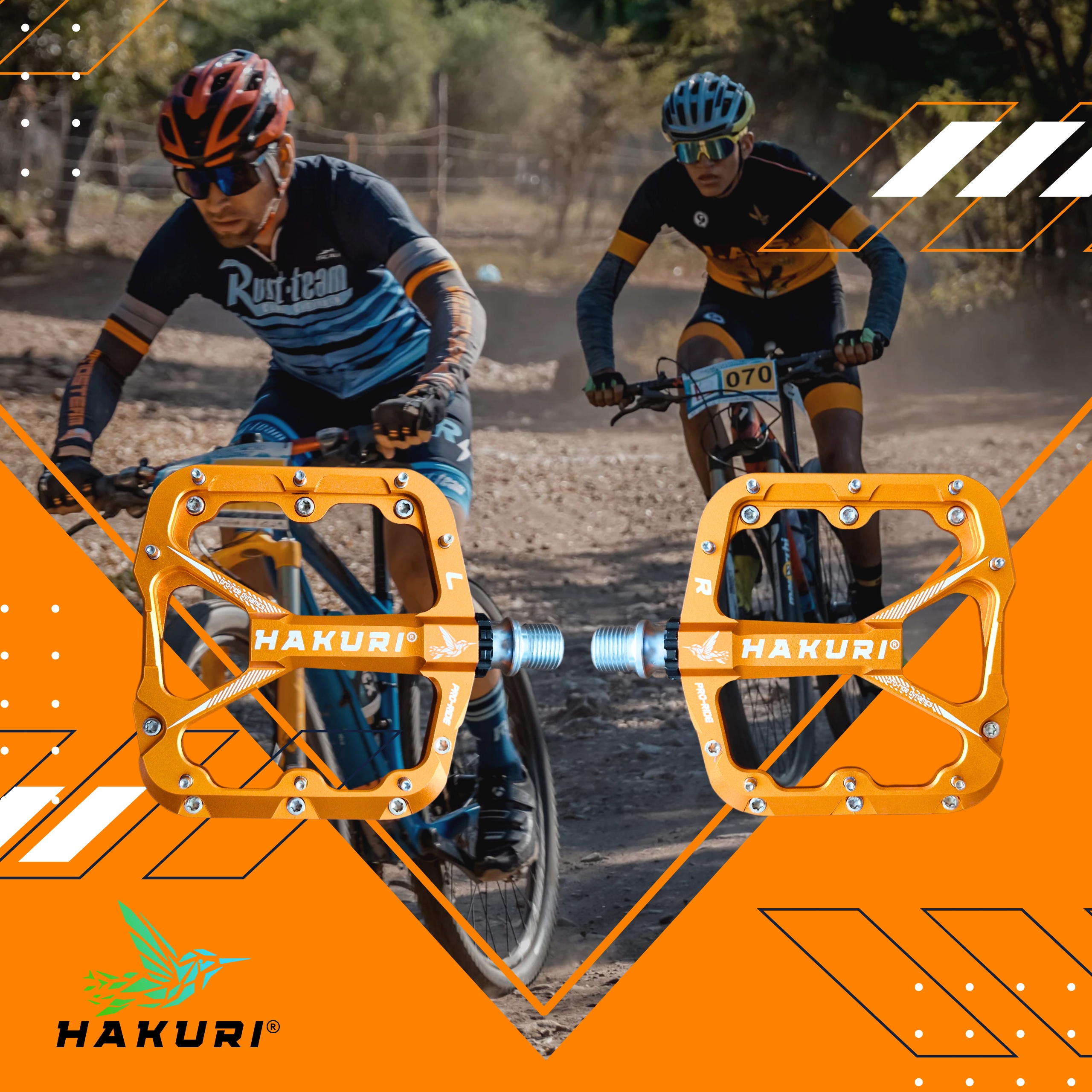 HAKURI PRO-RIDE DYNAMICS необхідні для повного контролю велосипеда на складній місцевості. Гірські велосипедисти, які віддають перевагу агресивному стилю їзди, обирають педалі на платформі зі шпильками для гарного зчеплення, шпильки тримають наше взуття, педалі стають нековзкими, що підвищує безпеку під час спуску.