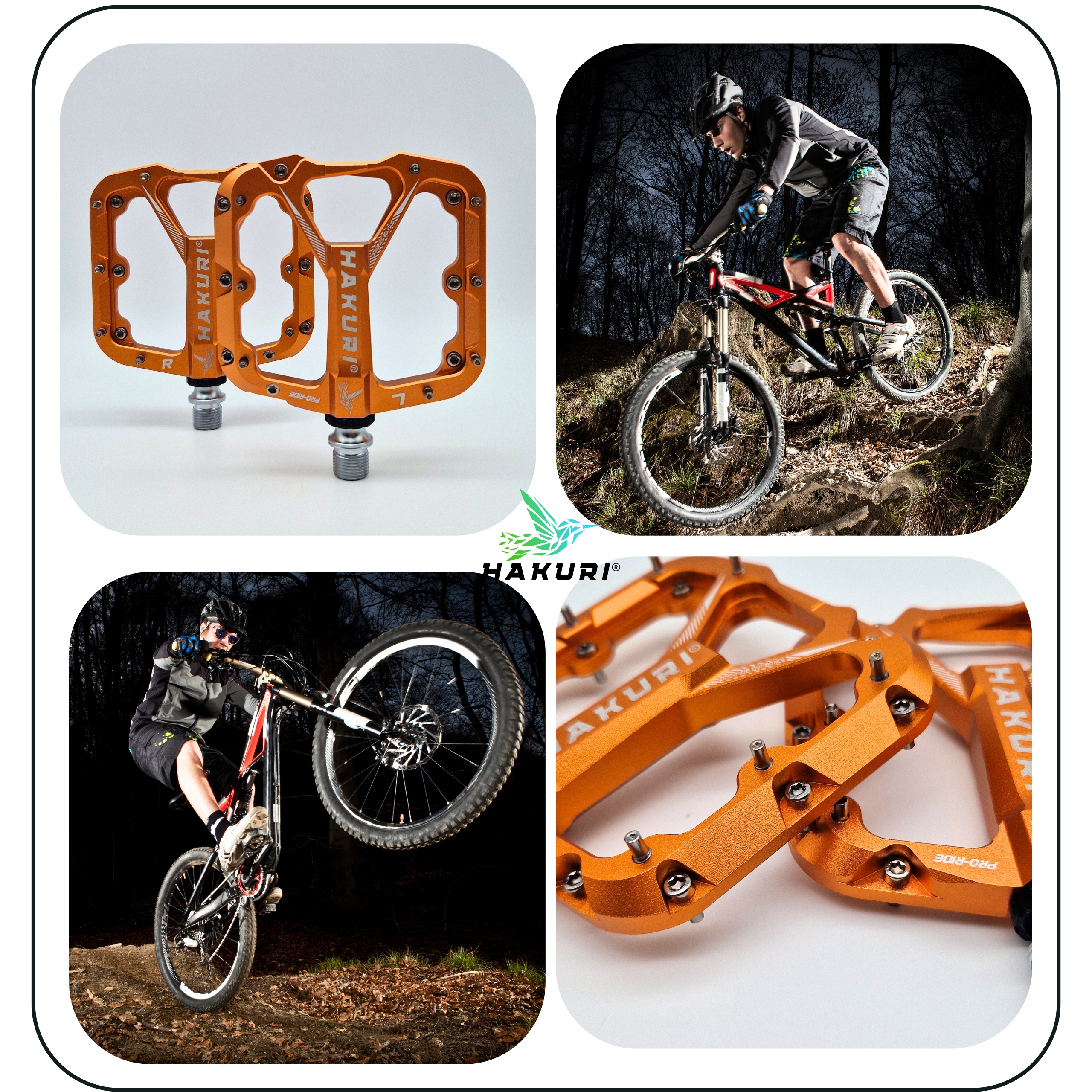 HAKURI - бренд, що спеціалізується на виробництві високоякісних велосипедних аксесуарів і велосипедних педалей з АЛЮМІНІЮ. Ми пропонуємо інноваційні рішення, які поєднують функціональність з естетикою, забезпечуючи користувачам неперевершені враження від водіння. Кожна деталь наших аксесуарів ретельно розроблена та виготовлена з матеріалів найвищої якості, щоб задовольнити вимоги навіть найвимогливіших велосипедистів. Керуючись філософією Kaizen, ми постійно прагнемо вдосконалювати кожен елемент нашої продукції. Усі продукти торгової марки HAKURI перевірені велосипедистами ALL-MOUNTAIN - DH - ENDURO - MTB у різних частинах світу, на найскладніших гірських спусках і підйомах.