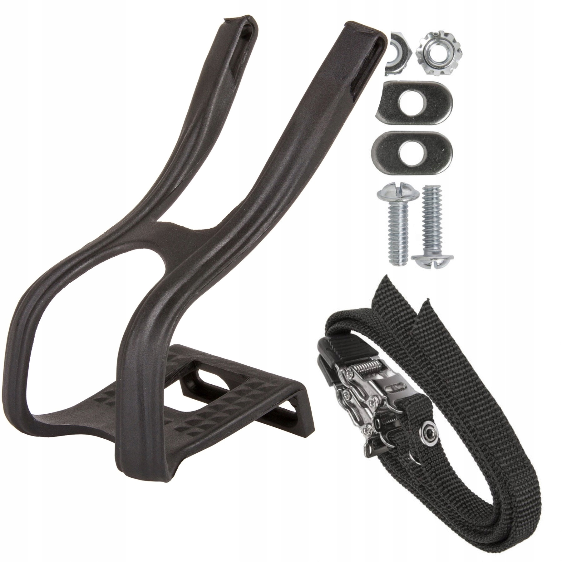 Пальці з ремінцями дозволяють нам досягти ефекту, подібного до педалей із кліпсами. Ви можете крутити педалі, не лише натискаючи на педаль вниз, а й тягнучи її вгору, на відміну від затискачів без бретелей, які лише допомагають стабілізувати ногу на педалі. Завдяки великому діапазону регулювання їх можна використовувати для будь-якого типу взуття.