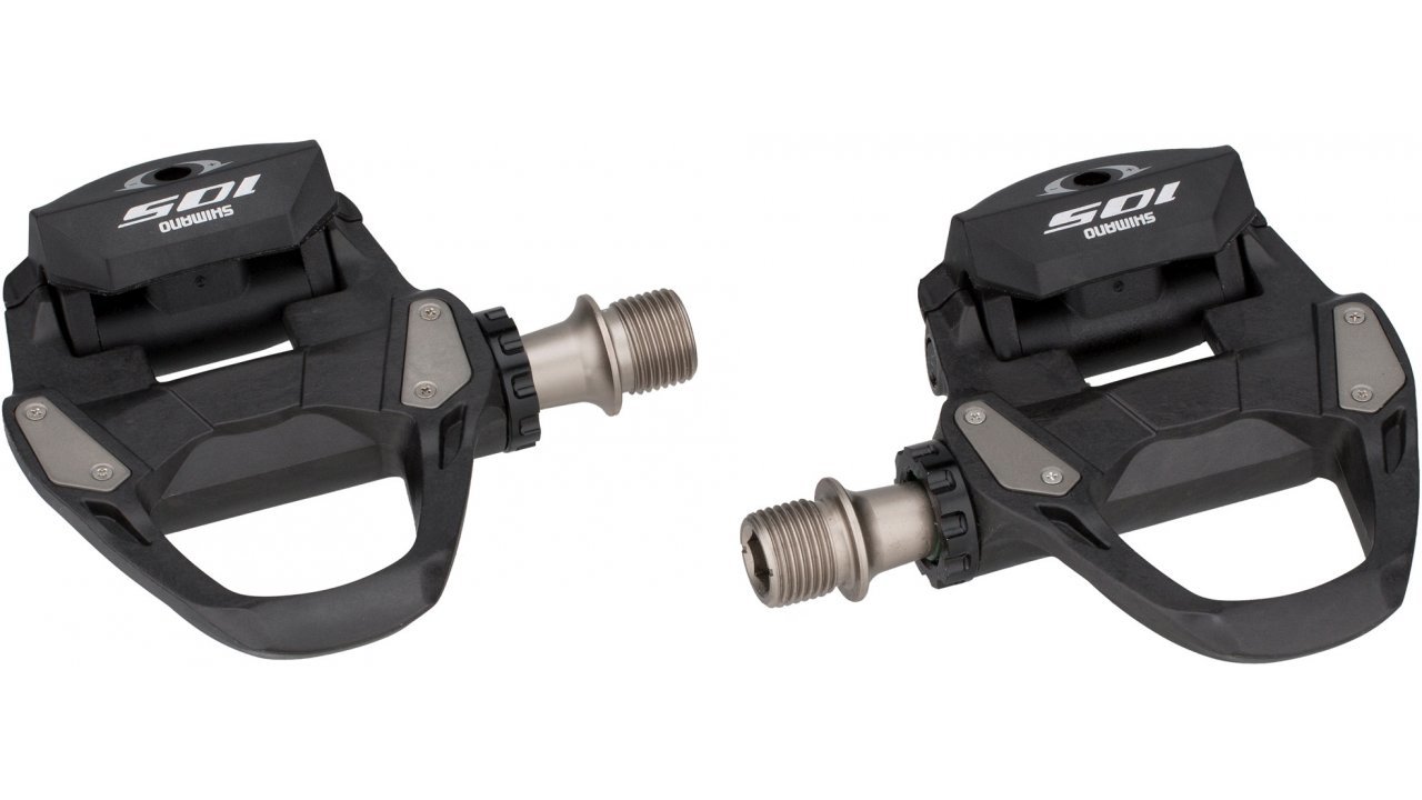 Дорожні педалі Shimano 105 PD-R7000 працюють у системі SPD-SL. Аеродинамічний корпус виконаний з армованого вуглецевим волокном пластику, що знижує вагу. Модель PD-R7000 забезпечує високу ефективність передачі сили райдера на шатуни. У набір додано шипи SM-SH11.