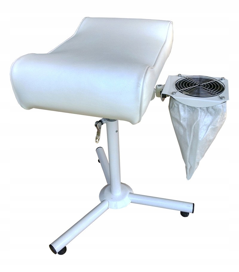 Підставка для ніг TORNADO (з 3D-всмоктуючою насадкою) регулюється по вертикалі та має регульований кут нахилу подушки, що робить її корисною під час виконання будь-яких процедур, а не лише педикюру. Він також має профільовану велику оббивку, яка добре тримає обидві ноги. Перевагою є маленький складний потужний пилосос, який завжди під рукою.
