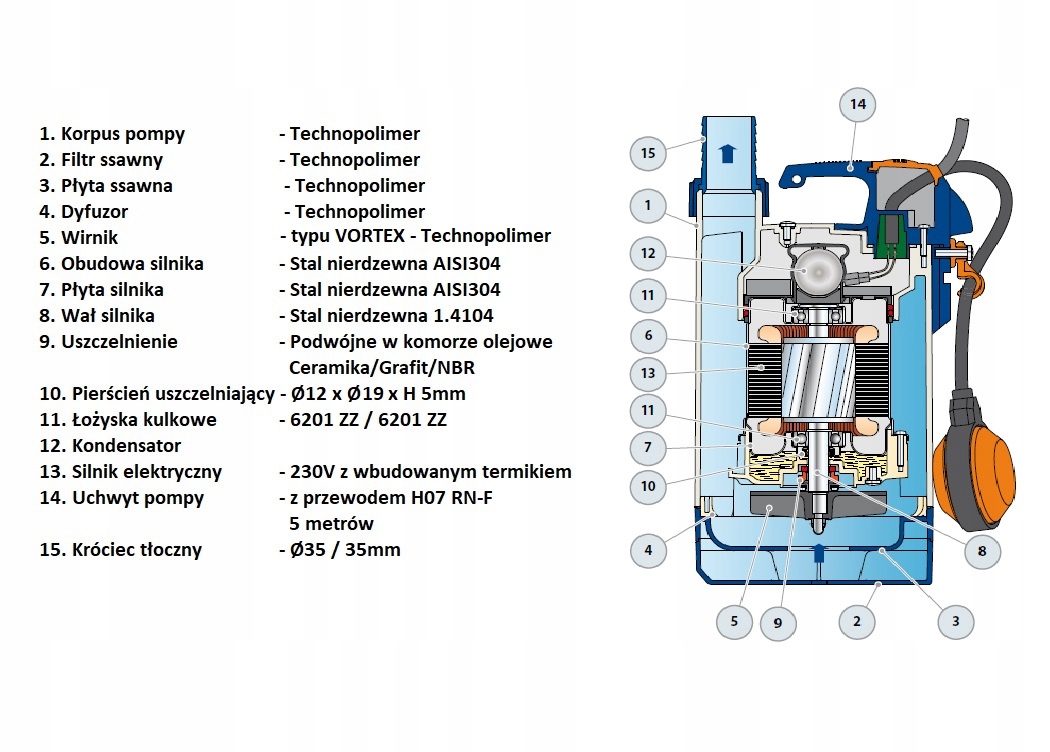 Питома дегідратація Верхній 2 Вихідний насос GM Pedrollo з вертикальним перемикачем поплавця призначений для брудної води, хімічно неагресивним для матеріалів, що використовуються для його виготовлення. Верхній вихор GM використовується для перекачування брудної води, забрудненого (з максимальним діаметром забруднення 25 мм) у домогосподарствах, сільськогосподарських та ремеслах. Вони використовуються для порожніх резервуарів дощової води, дренажної муніципальної стічної води, осушення затоплених підвалів, гаражів, басейнів, розкопок, водойм.