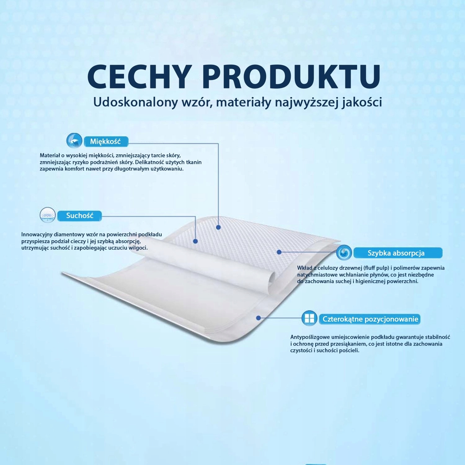розмір 60x90 см ідеально підходить для різних потреб, пропонуючи прості для руйнування та зміни, незалежно від місця використання. Фонди Карейна незамінні як в комфорті будинку, так і в професійній допомозі та медичних установах. Завдяки їм ви можете насолоджуватися чистотою та гігієною, де це найбільше потрібно.