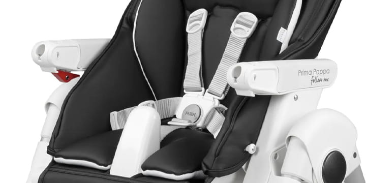 Безпека в кріслі Prima Pappa забезпечується 5-точковими ременями безпеки. Додаткова сходинка, стаціонарно закріплена в сидінні, запобігає вислизанню дитини з крісла.