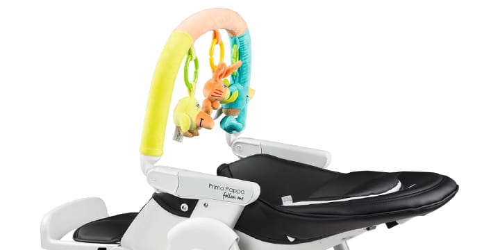 Крісло оснащене іграшковою штангою, завдяки якій дитина може відпочити в шезлонгу та зосередитися на кольорових елементах з перших місяців свого життя.