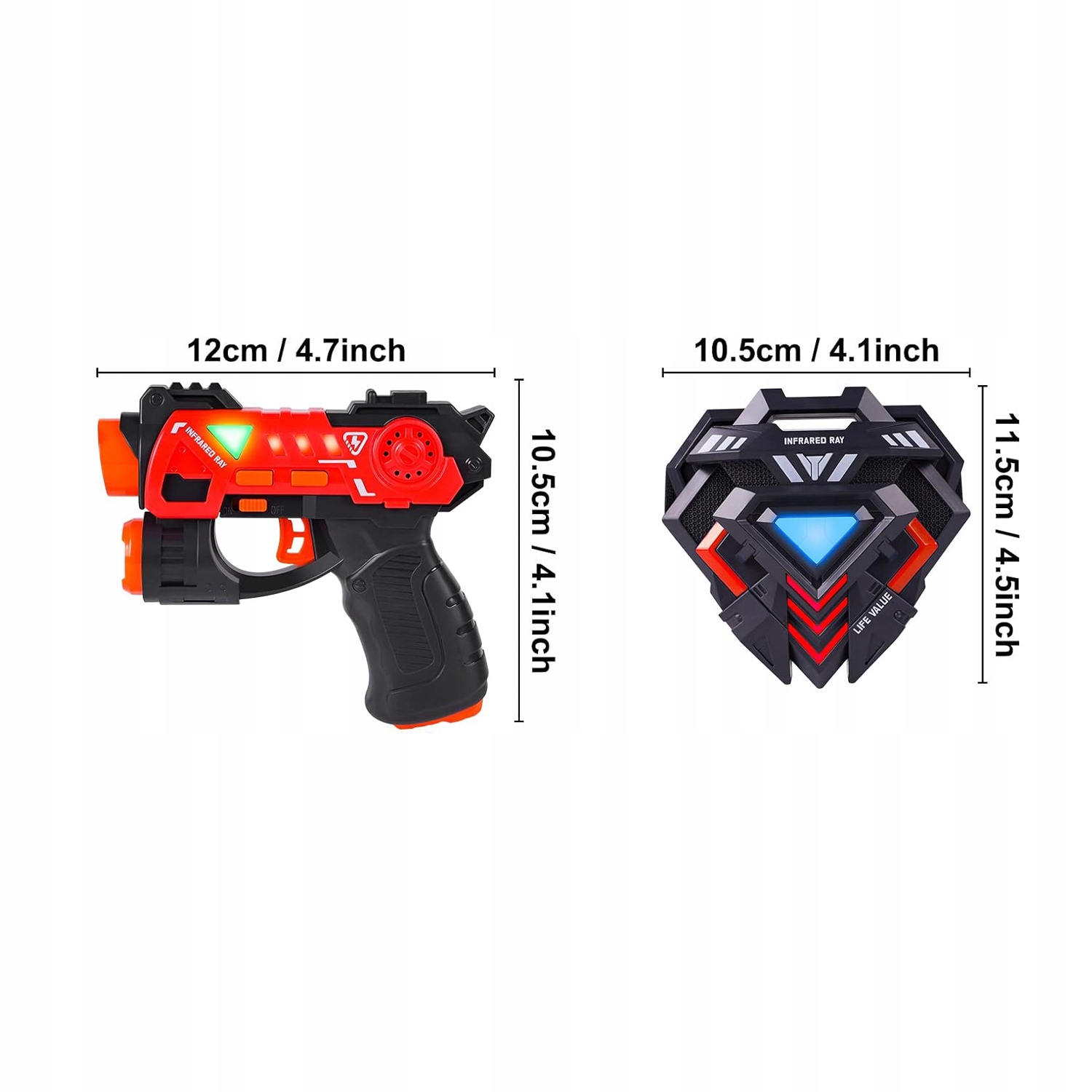 - ⭐Для пістолета потрібні 2 батареї АА 1,5 В, а для жилета — 3 батареї АА 1,5 В( НЕ входять у комплект ). Підходить для віком від 4 років.