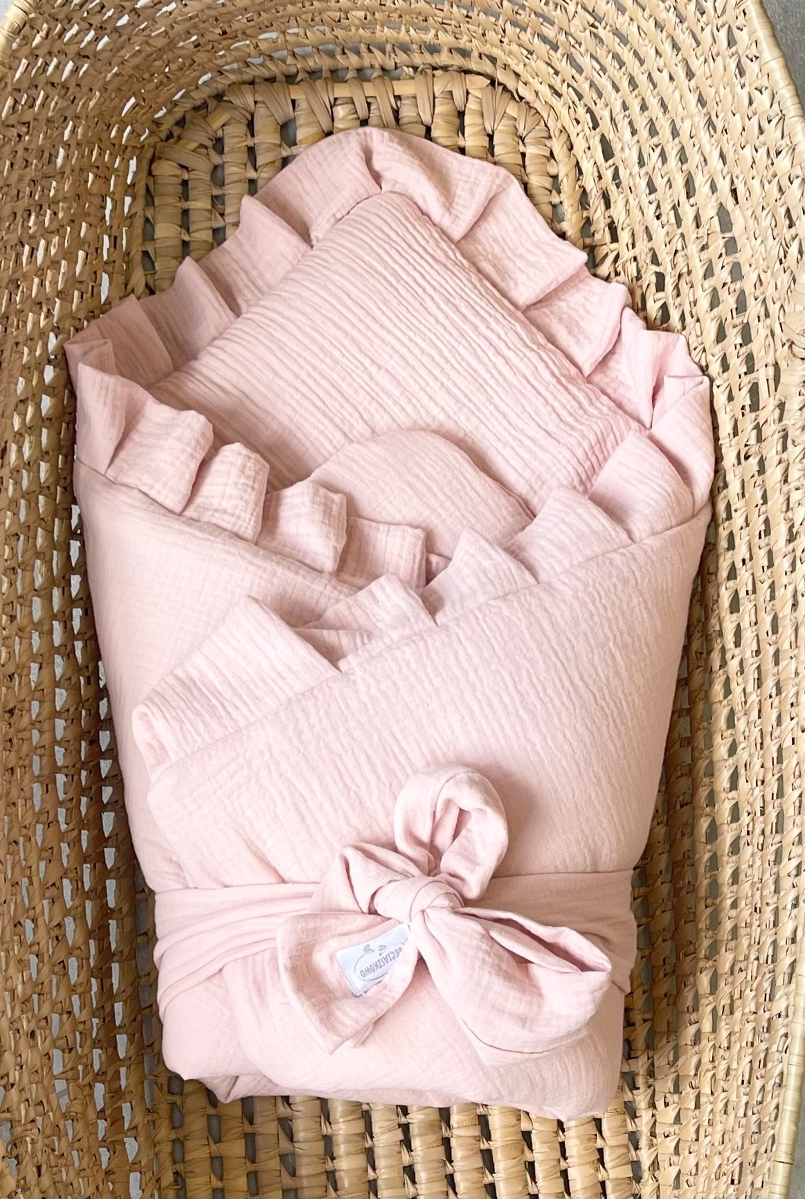 Пеленальна ковдра муслінова рожева з воланом