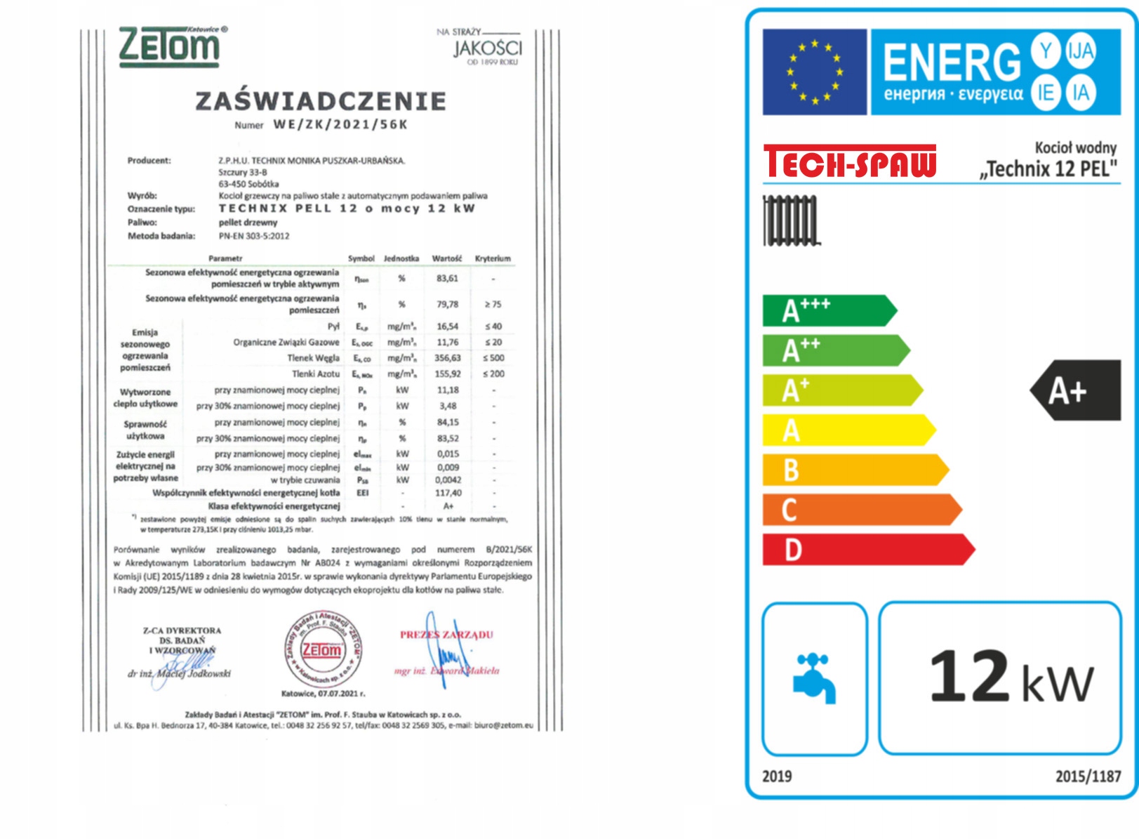 Цей продукт пройшов випробування в двох незалежних державних лабораторіях і в кожній з них отримано сертифікат котла відповідно до класу 5 (PN-EN 303-5:2012)та екодизайну (2020- 2009/125/EC). Завдяки цьому ви отримаєте державну субсидію на придбання пристрою.