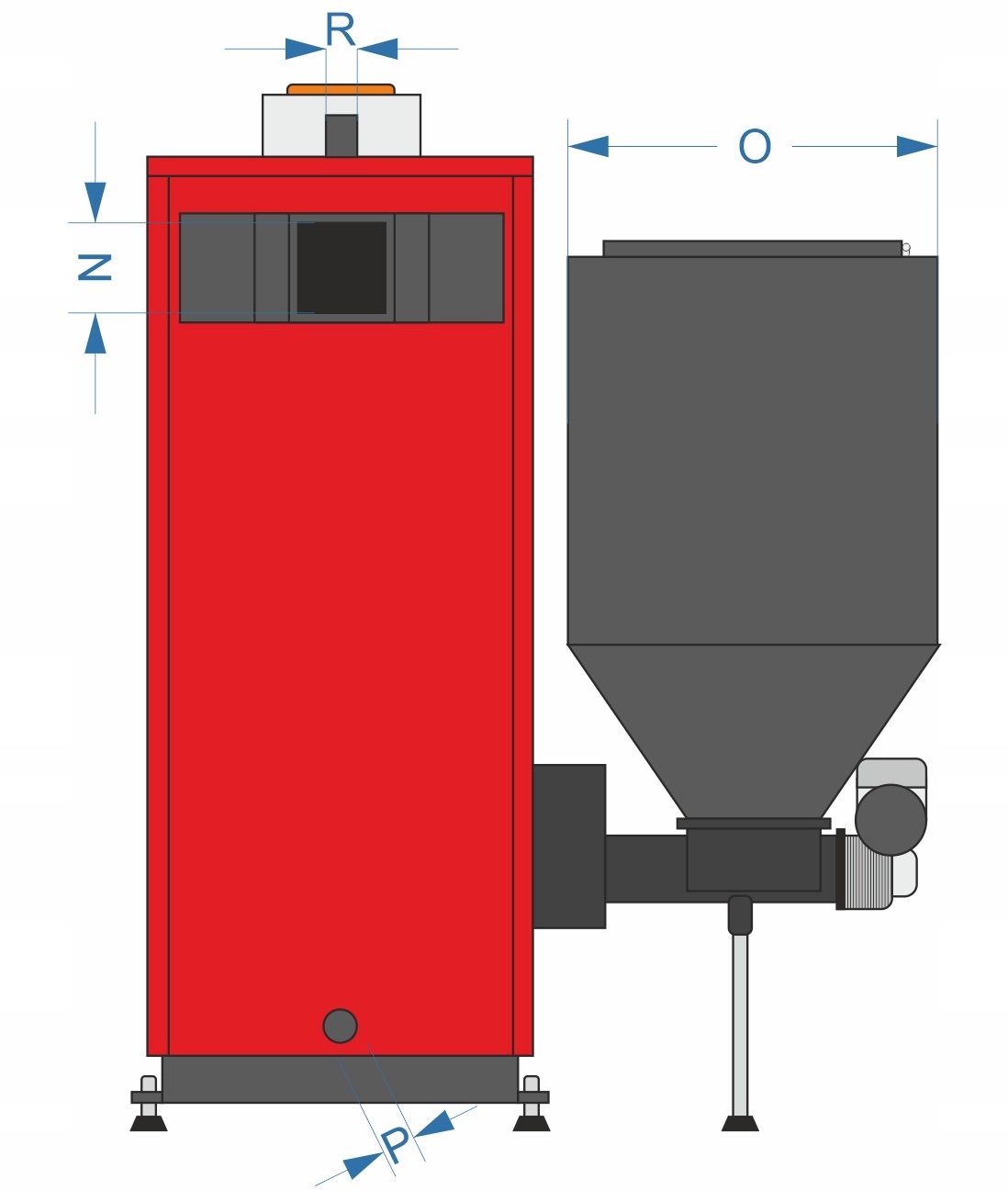 1. Завантажувальний бункер об'ємом до 160 літрів (може бути розміщений праворуч або ліворуч від котла)
