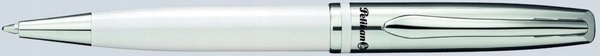 Елегантний дизайн і приємний дотик! Ручка з білого металу характеризується збалансованими лініями та особливою поверхнею. Він має практичний поворотний механізм і гнучкий затискач.