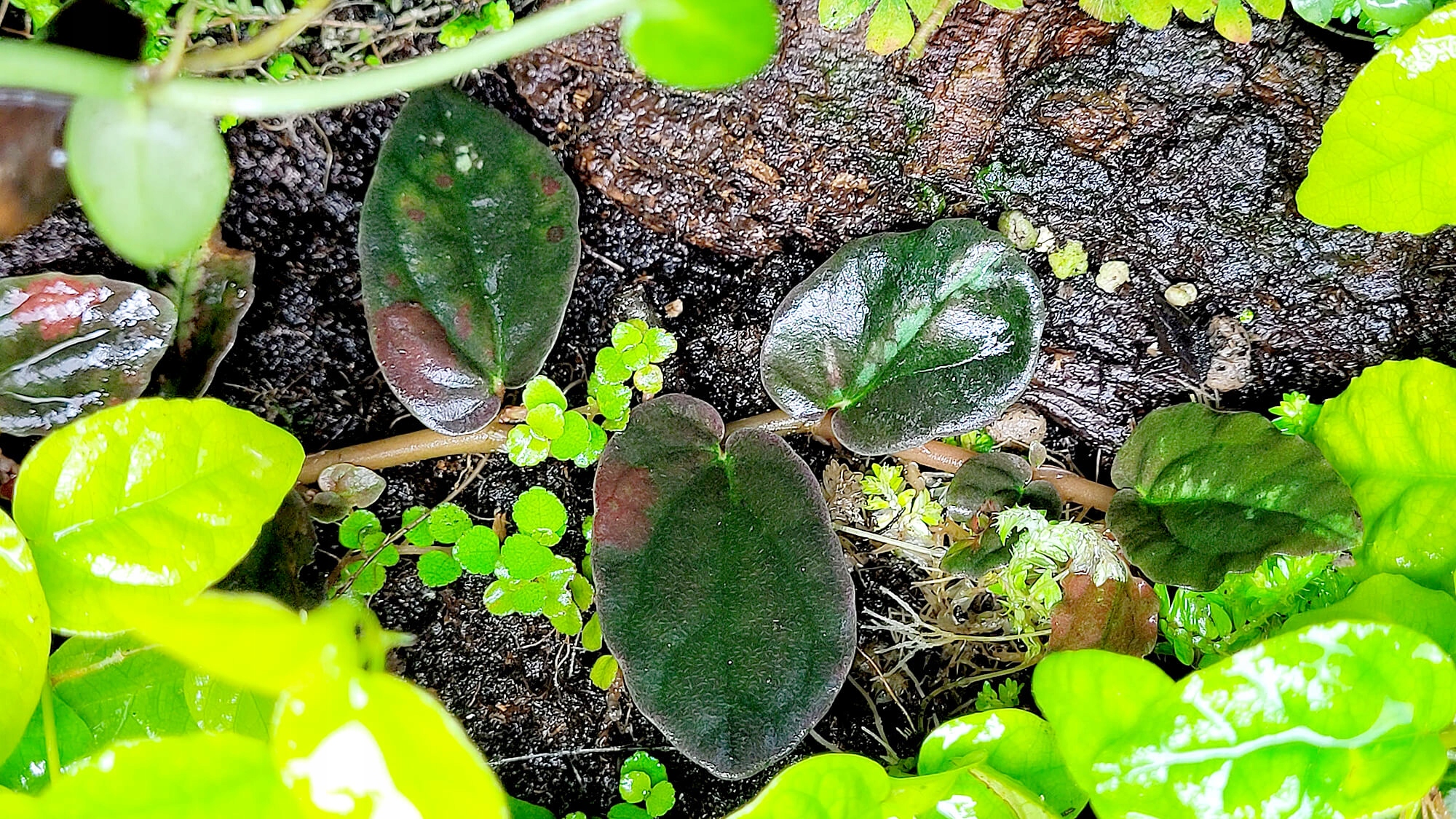 Походить з тропічних лісів, де висока вологість повітря та ґрунту. Він має унікальні червоно -коричневі листя, які покриті землею та прикрасами. Рослина відчуває себе добре вкоріненою у вологій торфах.