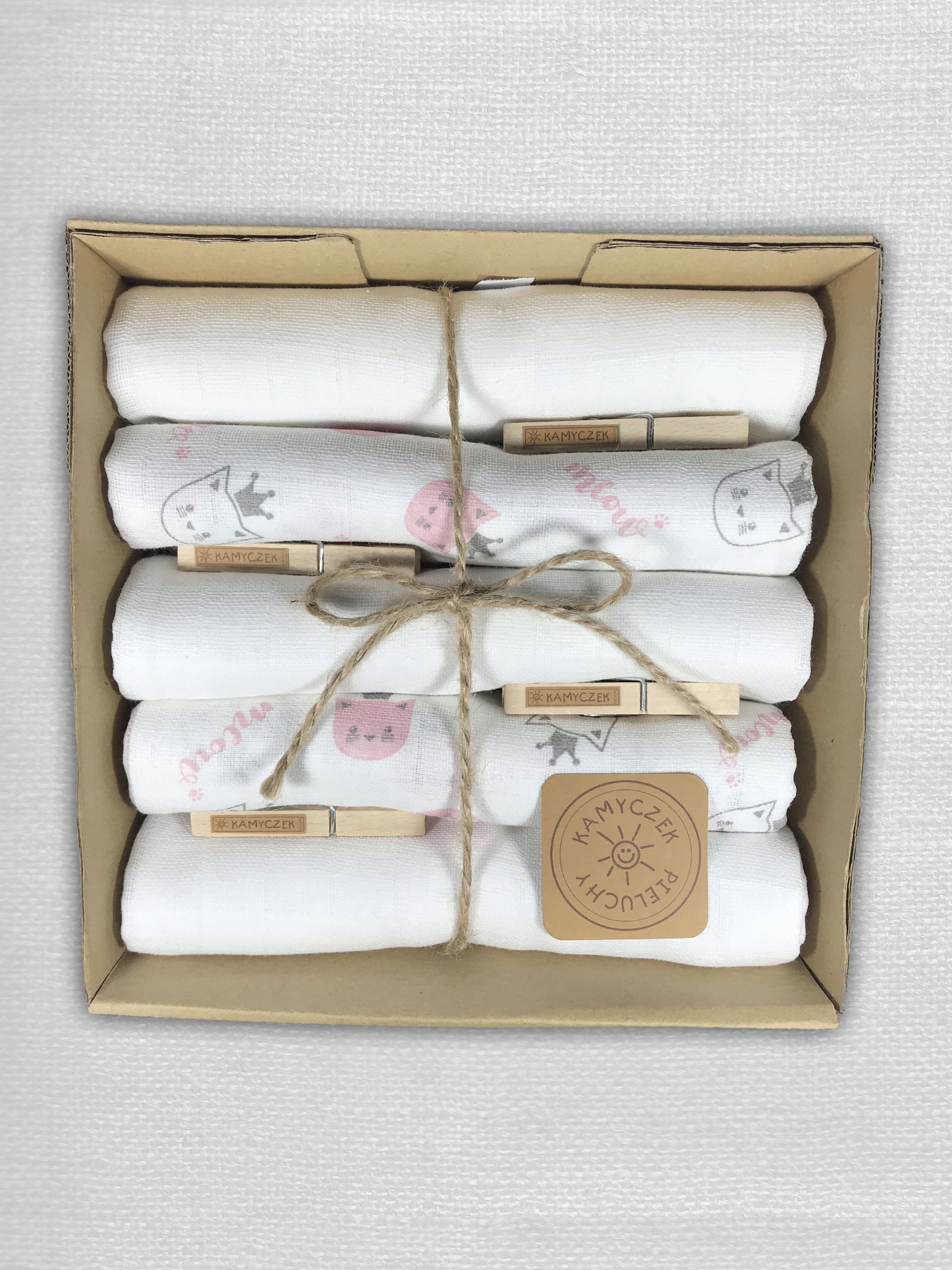Набір з 5 штук підгузків найвищої якості привабливо упакований, готовий подарувати. У комплект також входять безкоштовні фірмові прищіпки.