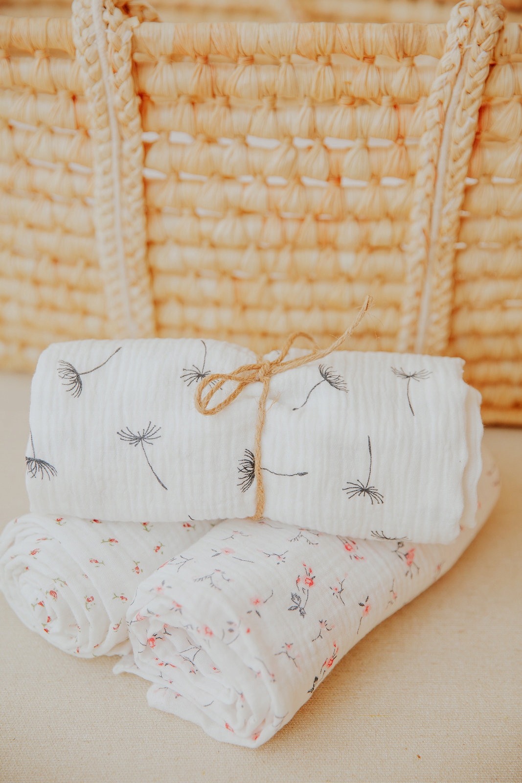 Комплект з трьох муслінових пелюшок шиємо тільки після замовлення. Звідси подовжений час очікування наших виробів, в залежності від кількості замовлень, але завдяки цьому: