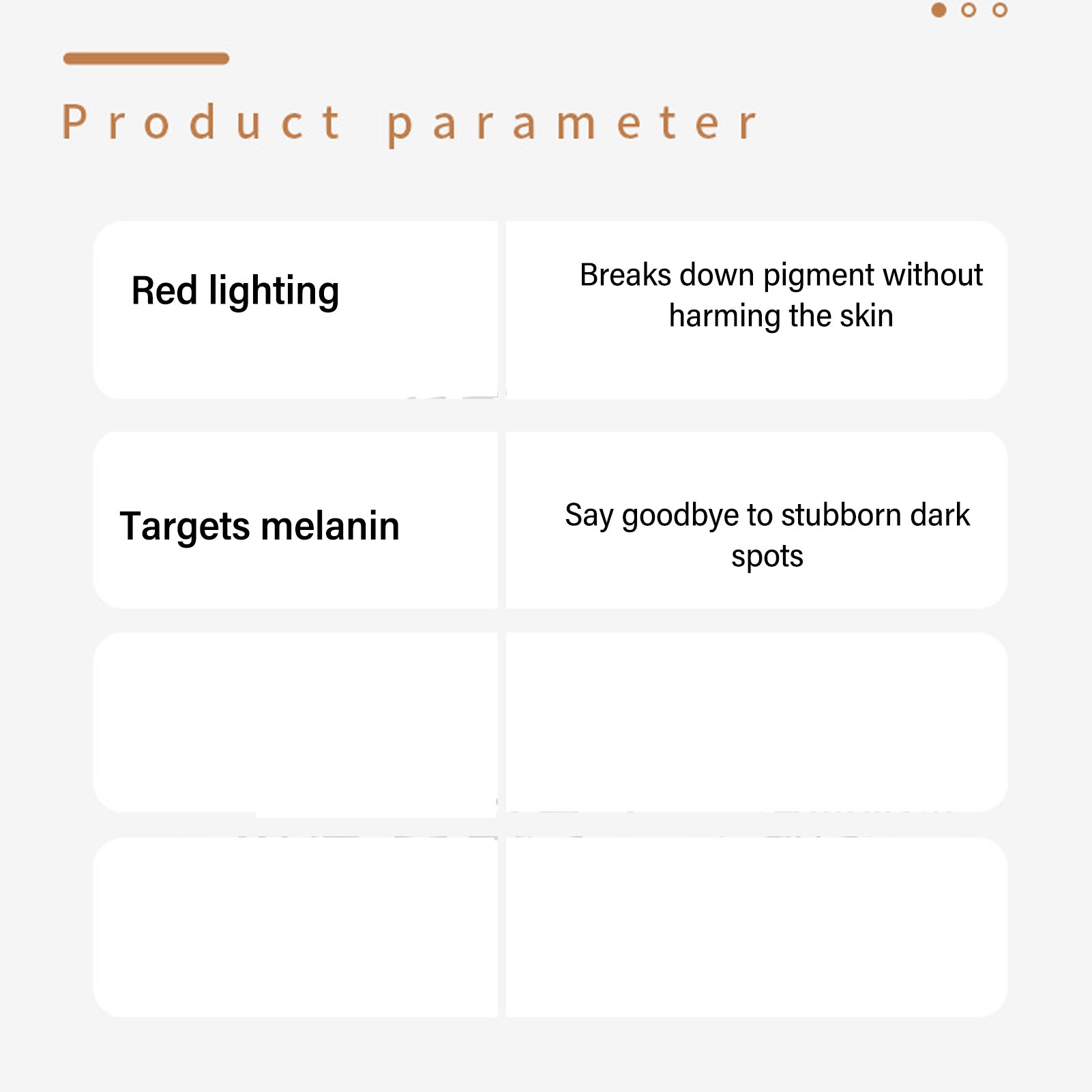 1. Червоне освітлення: ручка для видалення темних плям використовує дизайн червоного світла, спрямований на меланін і розщеплює пігмент, не завдаючи шкоди вашій шкірі, попрощайтеся з впертими темними плямами.