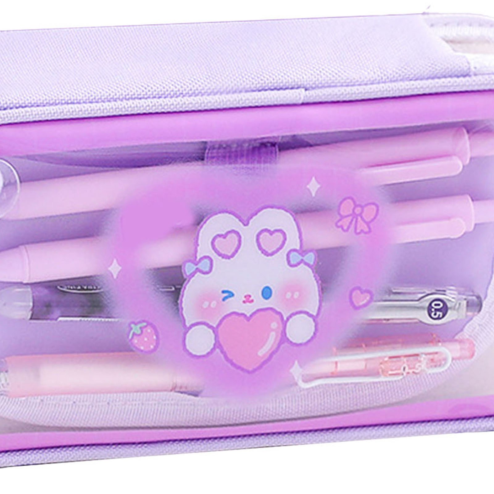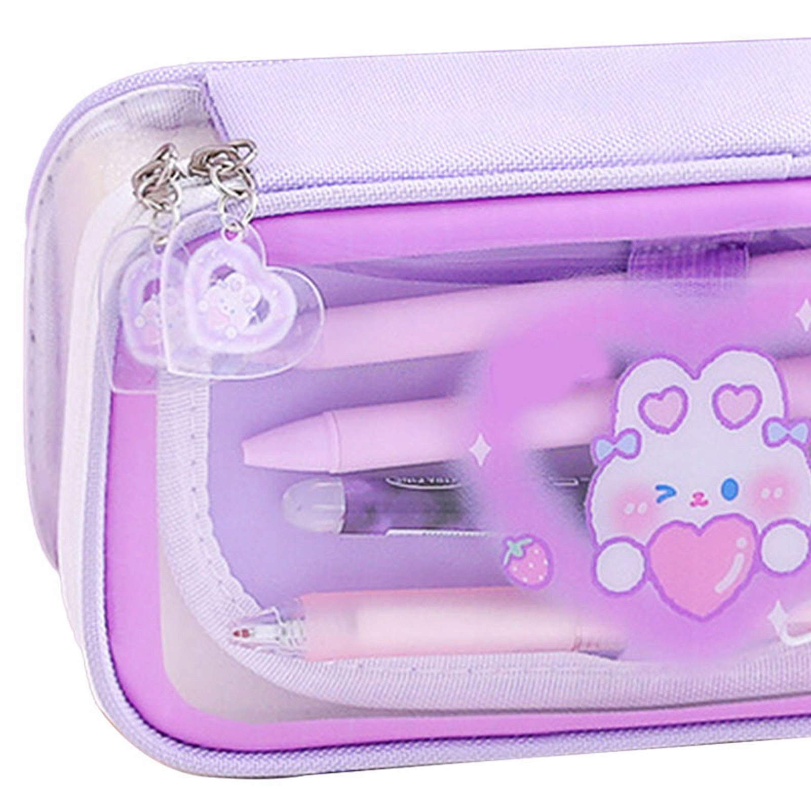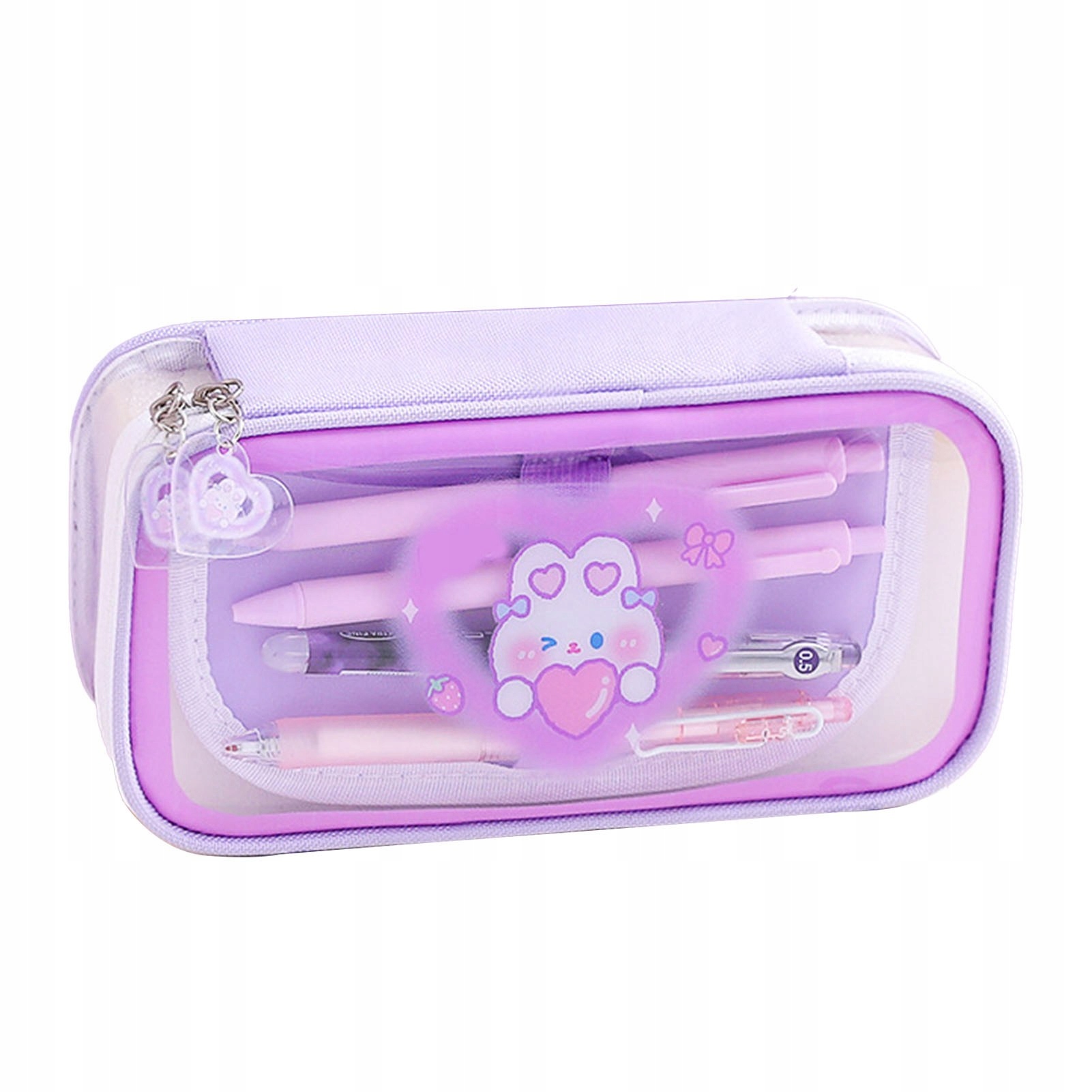 Пенал великої місткості, прозоре вікно, милий мультяшний візерунок, водонепроникна канцелярська сумка для домашнього офісу, фіолетова школа