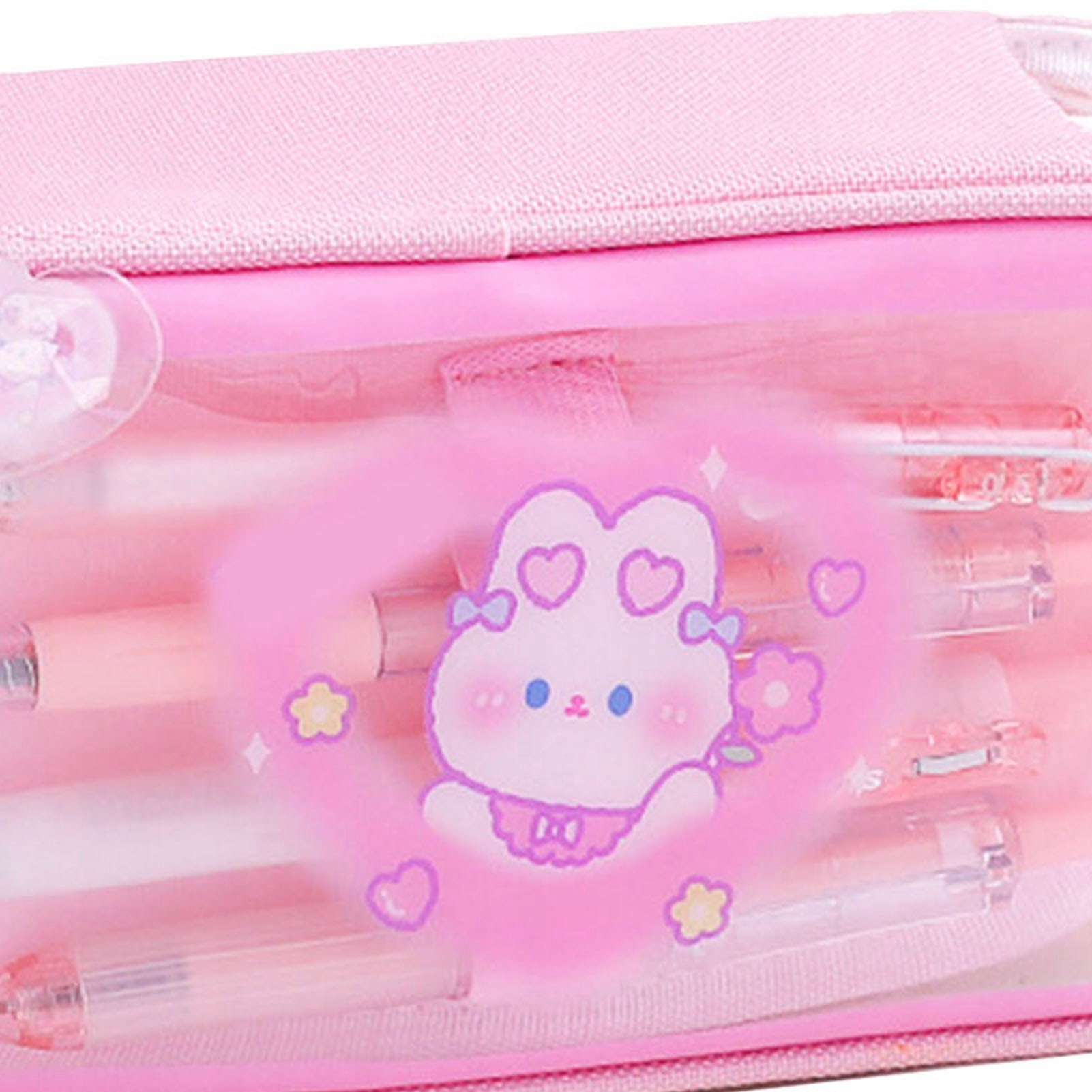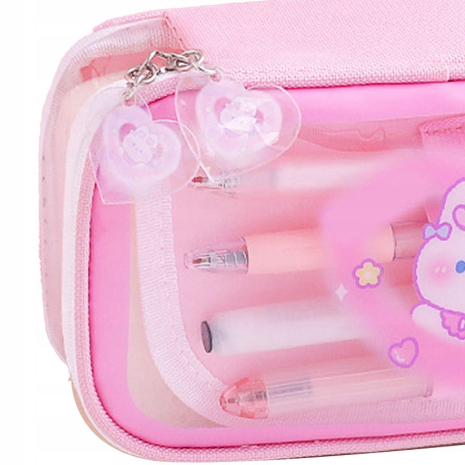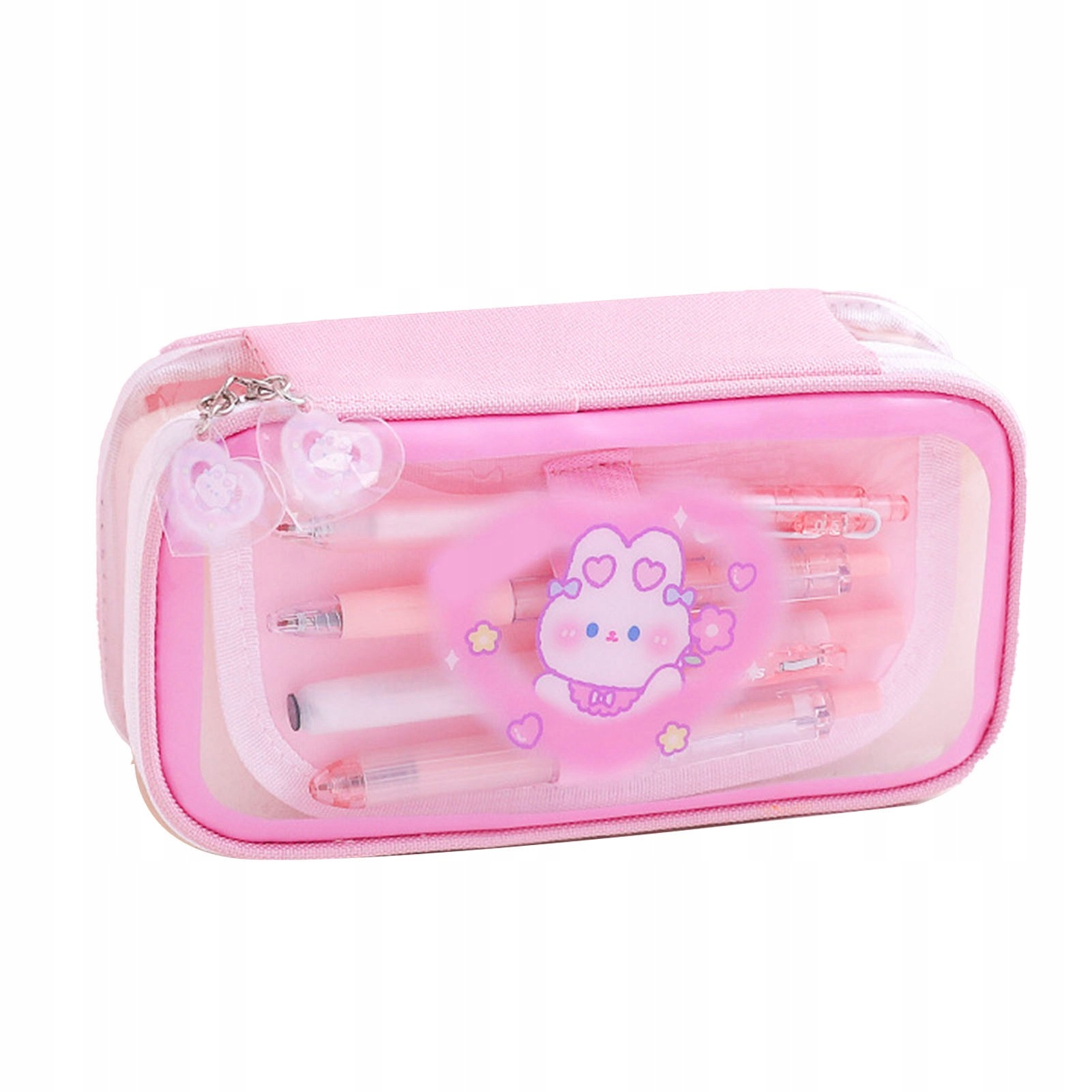 Пенал великої місткості, прозоре вікно, милий мультяшний візерунок, водонепроникна канцелярська сумка для домашнього шкільного офісу Roseate