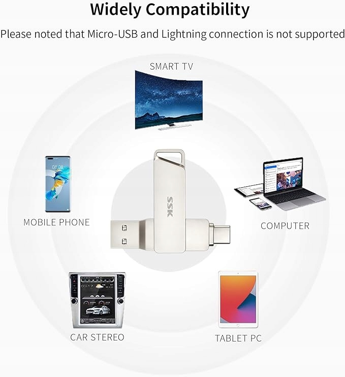 Pendrive SSK 128GB - це чудове рішення для людей, які шукають швидкого та довговічного носія даних. Завдяки подвійному роз'єму USB-C та USB-A 3.2 Це дозволяє легко передавати файли між різними пристроями. Міцний, металевий корпус та швидка швидкість передачі роблять його ідеальним вибором як для особистого, так і для професійного використання.