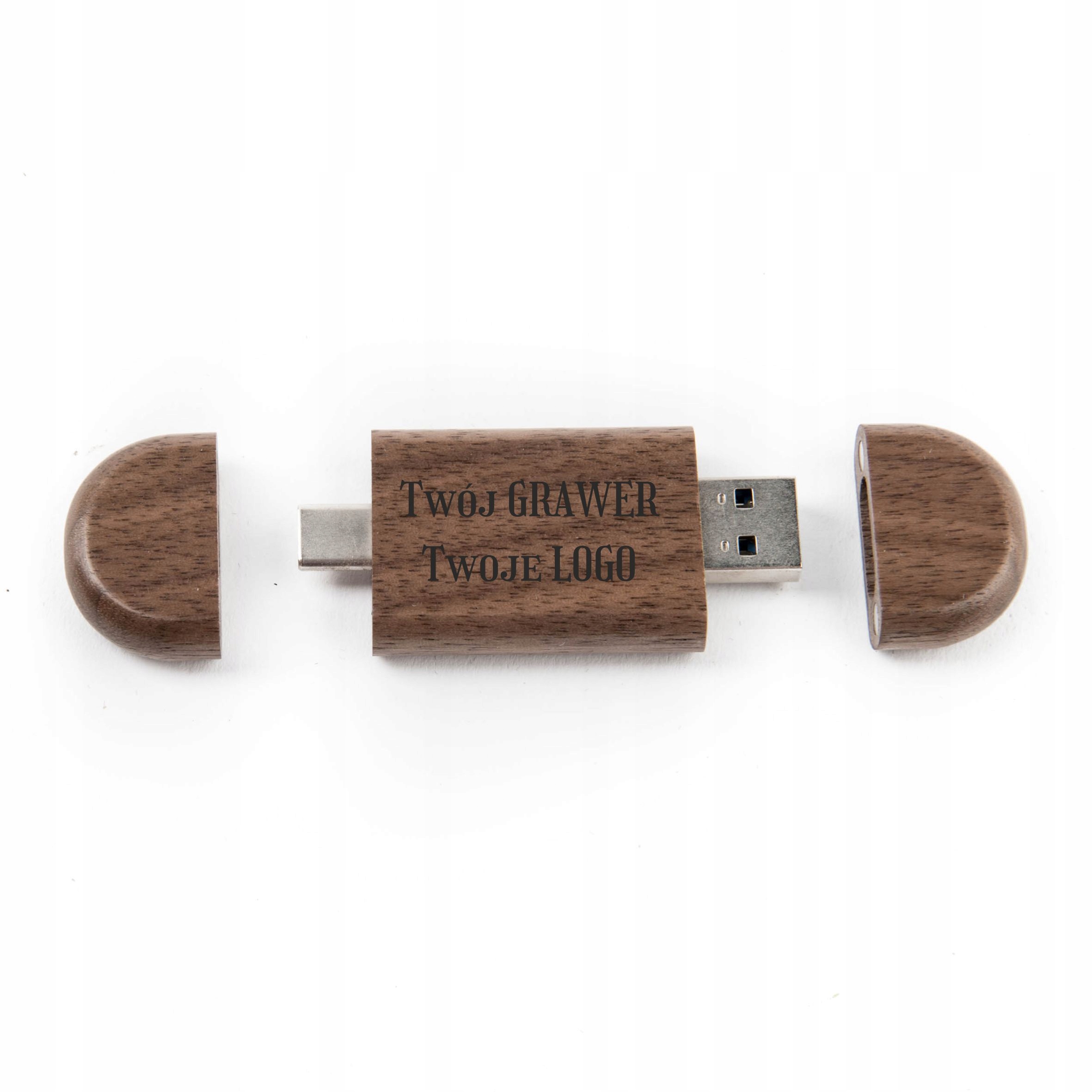 Пендриво-дерев’яна гайка 32 ГБ 2,0 + 3,2 USB-C тип C + Box + ваш гравірувальний логотип