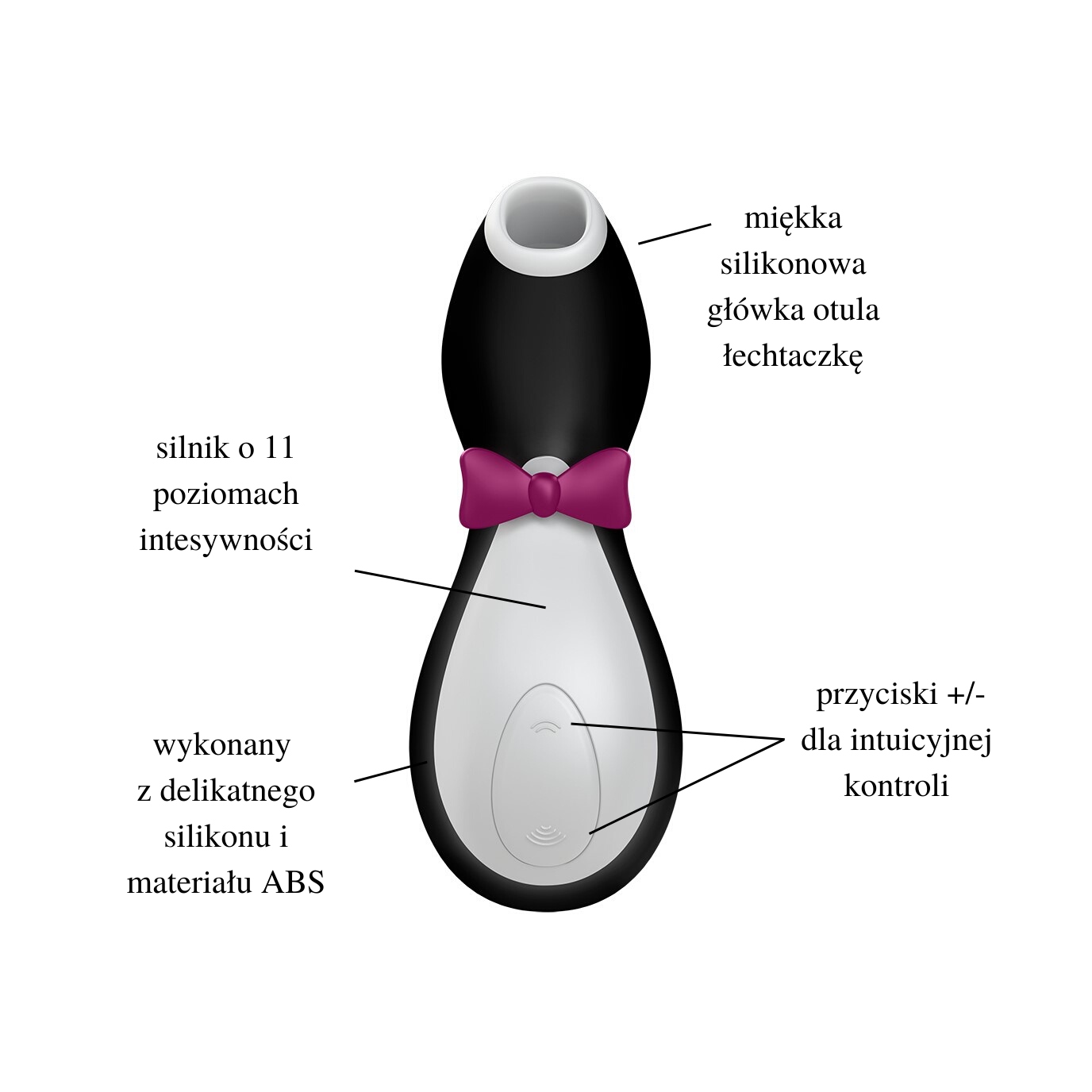 Завдяки абсолютно новій власно розробленій технології Satisfyer Pro Penguin є піонер у справі революції у свідомості жінок у сфері сексу. Завдяки інтенсивним хвилям тиску та пульсаціям поколювання, Satisfier Pro 2 забезпечує безконтактну стимуляцію та забезпечує численні та надзвичайно інтенсивні оргазми протягом кількох хвилин. Цей новий гаджет, який необхідно мати, є водонепроникним, тому ви можете легко використовувати його в душі чи джакузі для ще більшого задоволення.