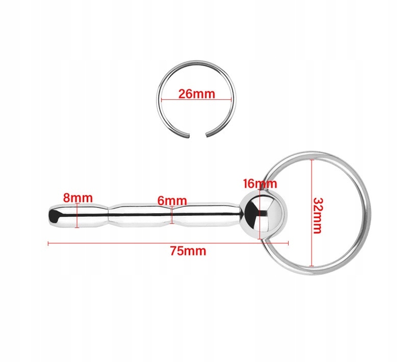 PENIS PLUG, DILATOR STALOWY Z UJŚCIEM PŁYNÓW