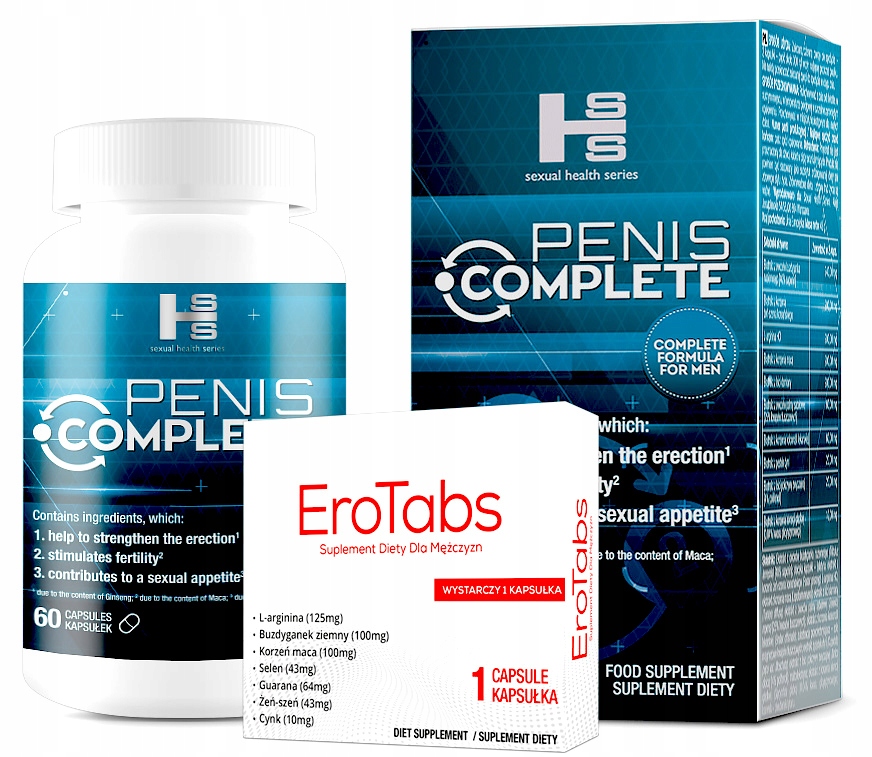 Упаковка Penis Complete містить 60 капсул. Капсули знаходяться в щільно закритій пластиковій банці. Баночка поміщена в картонну упаковку виробника. У коробці багатомовна листівка, включно з польською. Буклет також доступний в електронному варіанті для завантаження в деталях аукціону. Термін придатності Penis Complete становить не менше одного року, зазвичай близько 2 років. Завдяки поточним поставкам безпосередньо від виробника ви можете бути впевнені в найдовшому терміні зберігання добавки на Allegro.