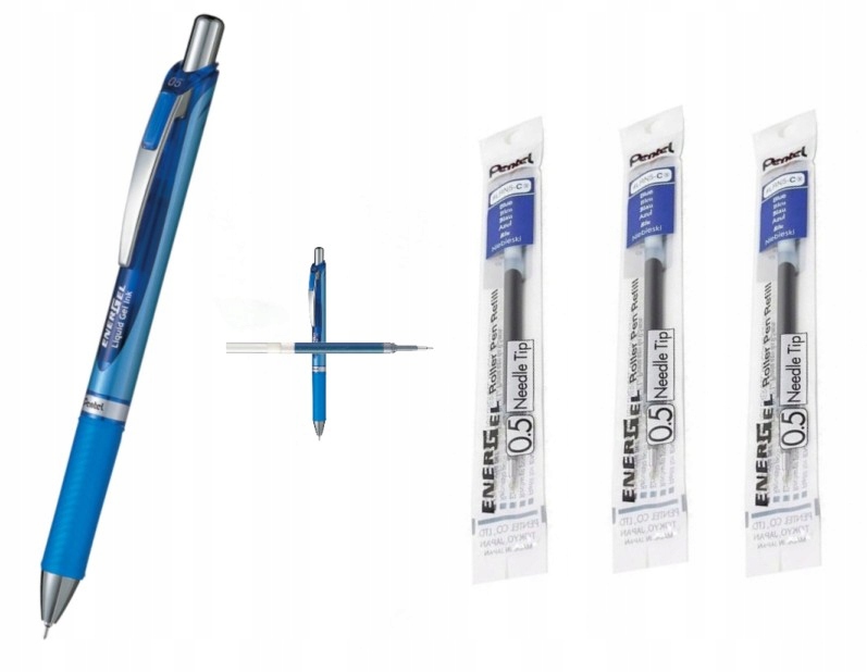Набір: Pentel Enerl Bln75 + 3 кулькова ручка. Енергія BLN75 (синій, наконечник голки 0,5 мм)
