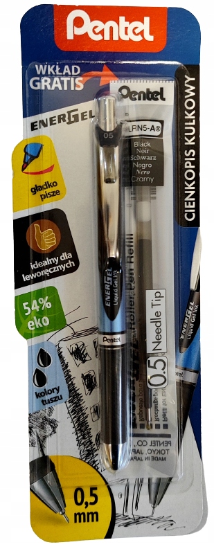 У цьому чорнилі Finliner використовується інноваційна технологія чорнила EnerGel , яка поєднує в собі найкращі властивості як гелевих, так і рідких чорнил. Завдяки цьому письмо стає ще плавнішим і зручнішим, а рядки — насиченими й глибокими. Кулькова ручка Blue EnerGel 0,5 Pentel Ballpoint Pen - це не тільки інструмент для письма, а й довговічний і надійний продукт. Міцна конструкція та високоякісні матеріали роблять цей файлайнер здатним витримувати інтенсивне використання протягом тривалого часу. Вам не потрібно турбуватися про те, що чорнило закінчиться або кулька розіб’ється – цей продукт створений, щоб служити вам багато років. Підсумовуючи, кулькова ручка Blue EnerGel 0,5 Pentel є професійним інструментом для письма, який забезпечує неперевершену якість, комфорт і довговічність. Завдяки інноваційній технології чорнила EnerGel письмо стає плавним і точним, а лінії інтенсивними і глибокими. Цей файлайнер ідеально підходить як для щоденного використання, так і для завдань, що вимагають більшої точності. Найважливіші параметри продукту: - Кулькова ручка - Колір: синій - Товщина лінії: 0,5 мм - Технологія чорнила EnerGel - Міцна конструкція - Міцність і надійність.