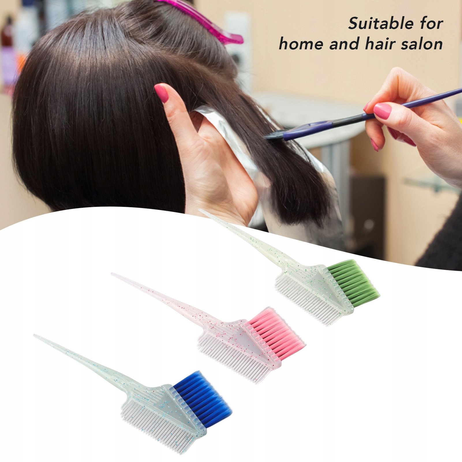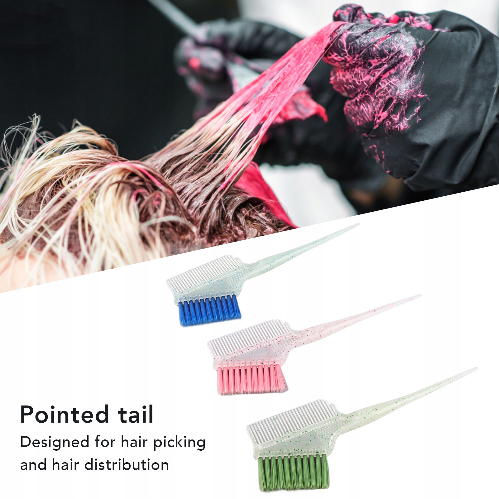 3 шт. Двостороння щіточка для фарбування волосся Гребінець М’яка нейлонова щітка для мелірування волосся Аплікатор з ручкою з блискітками