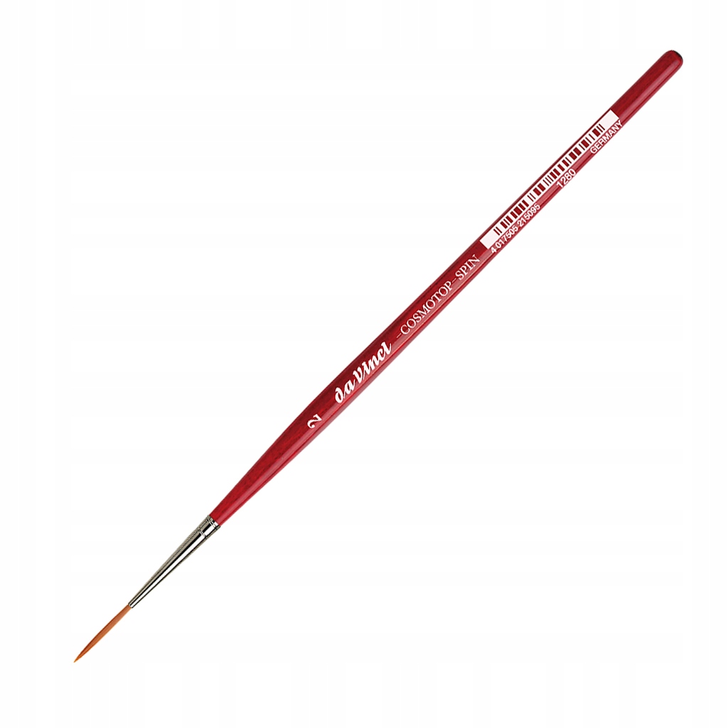 Da Vinci Cosmotop-Spin із серії 1280 легко миються та зберігають форму. Вони добре вбирають чорнило. Щітки мають короткі шестикутні ручки, покриті червоним лаком, і безшовні сріблясті наконечники.
