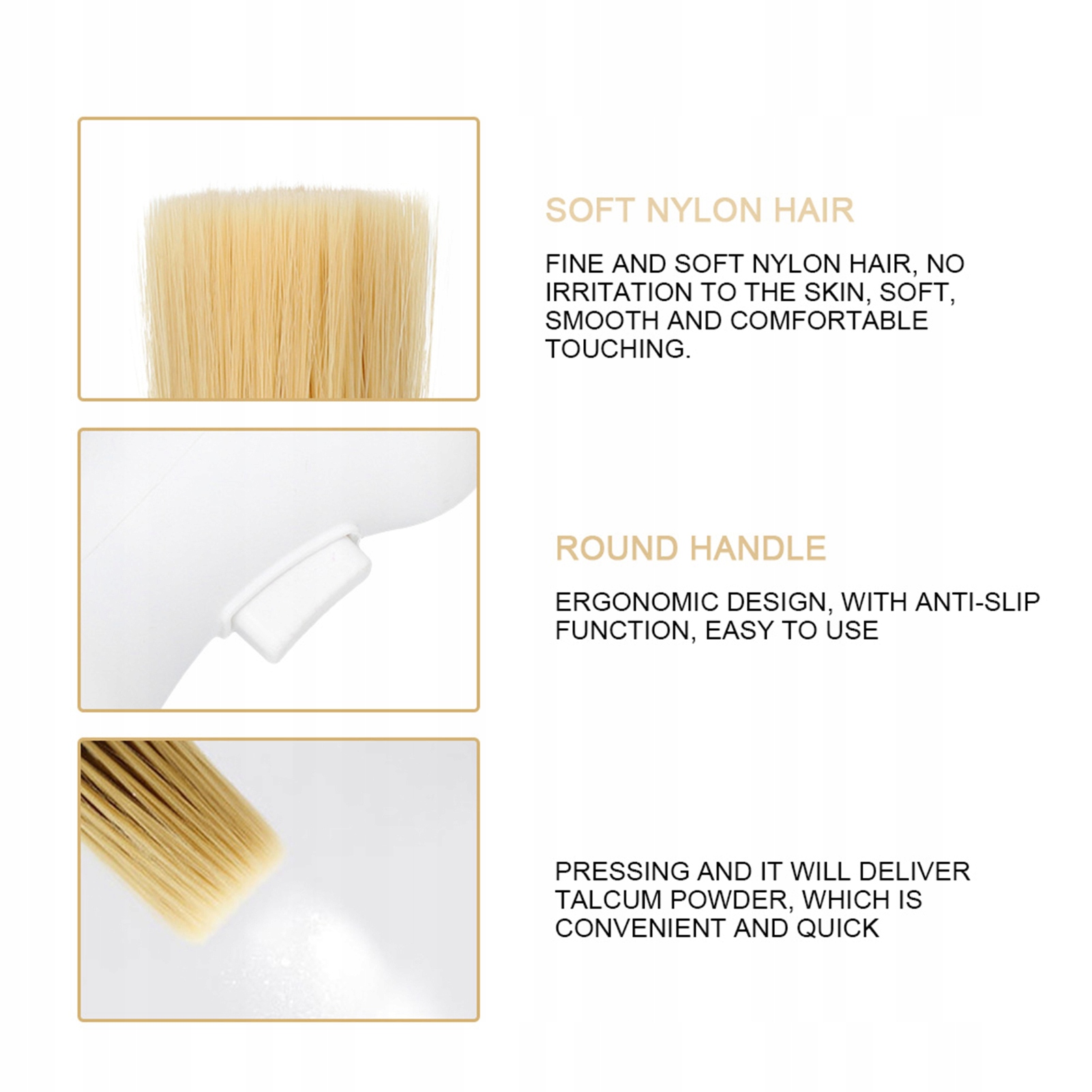 Функція: кисть може наносити порошок, прес може наносити порошок, підходить для нанесення тальку.
