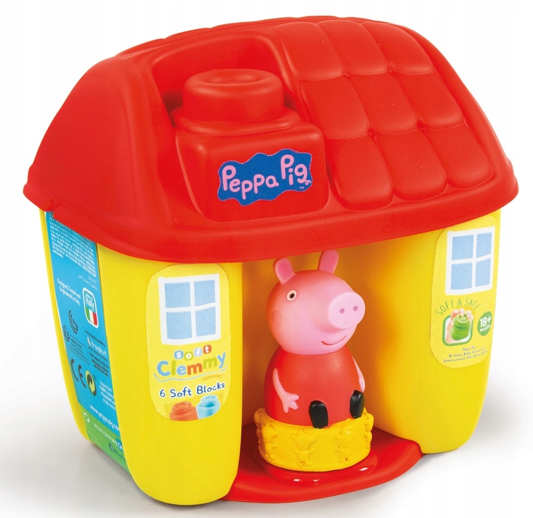 - Дружнє відерце Свинка Пеппа у формі будиночка містить 6 м'яких блоків Clemmy, створених для абсолютно безпечної гри найменших користувачів.
