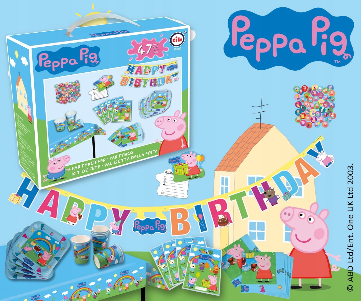 валізу містить 47 частин, які створюють чудову атмосферу вечірки з сімейством свиней