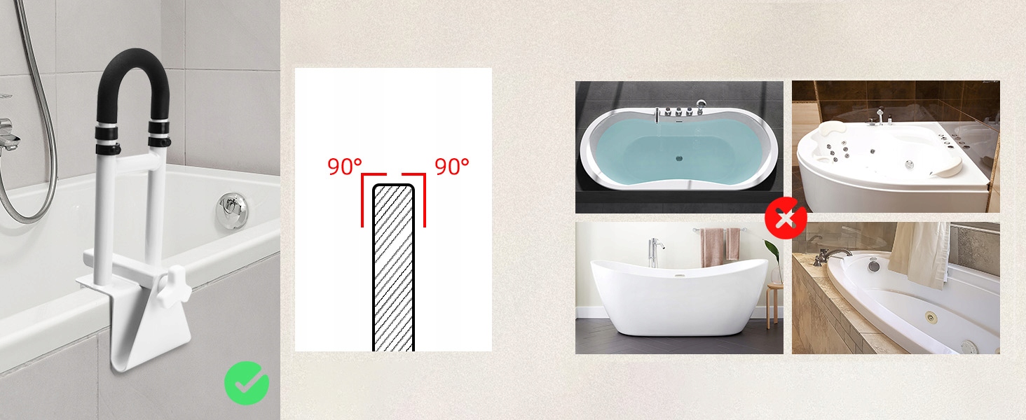 затискачі для ванни підходять для вертикальних стінок ванни товщиною 9-16 см. Цей поручень для ванни для людей похилого віку можна легко прикріпити до ванни, щоб уникнути непотрібних ризиків, таких як ковзання та падіння.