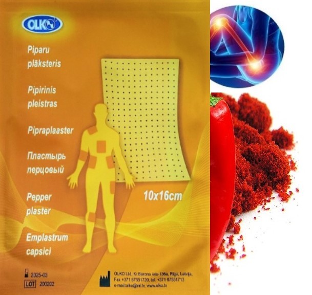 Злегка зігріваючий перцевий пластир для застосування як болезаспокійливий засіб при радикулітах, невралгіях, міозитах і люмбаго, як допоміжний засіб при захворюваннях верхніх дихальних шляхів і простудних захворюваннях. Екстракт перцю, що міститься в пластирі, знімає захворювання м'язів і суглобів.
