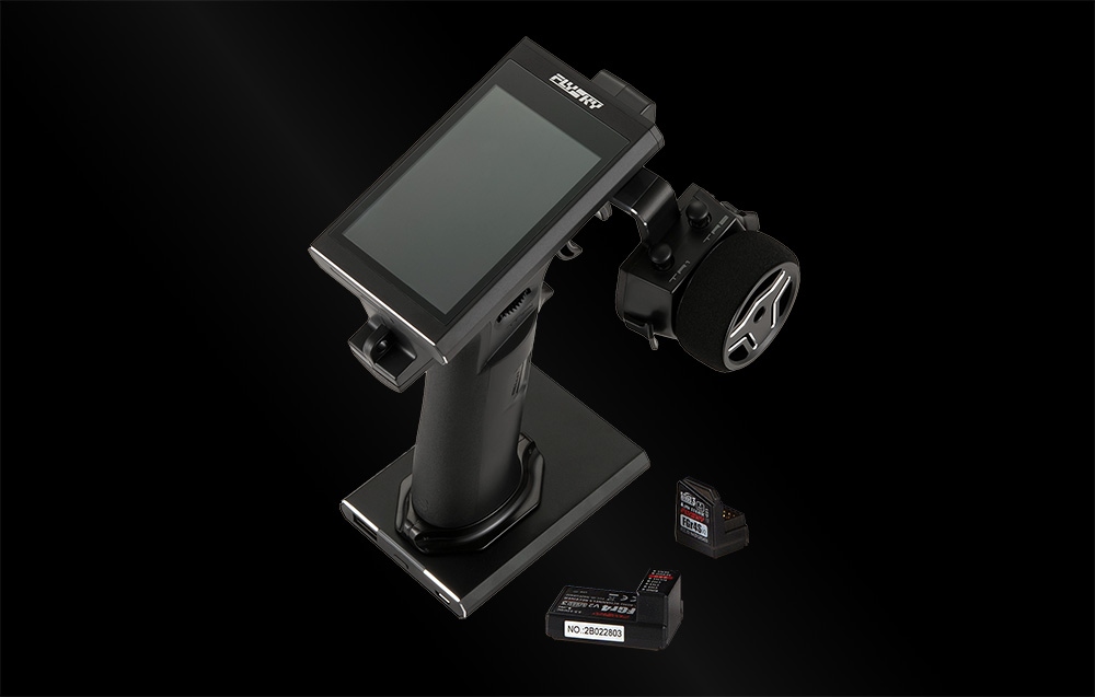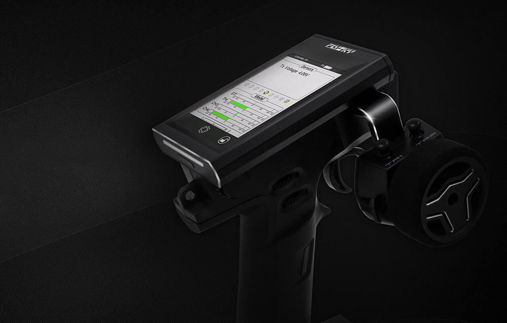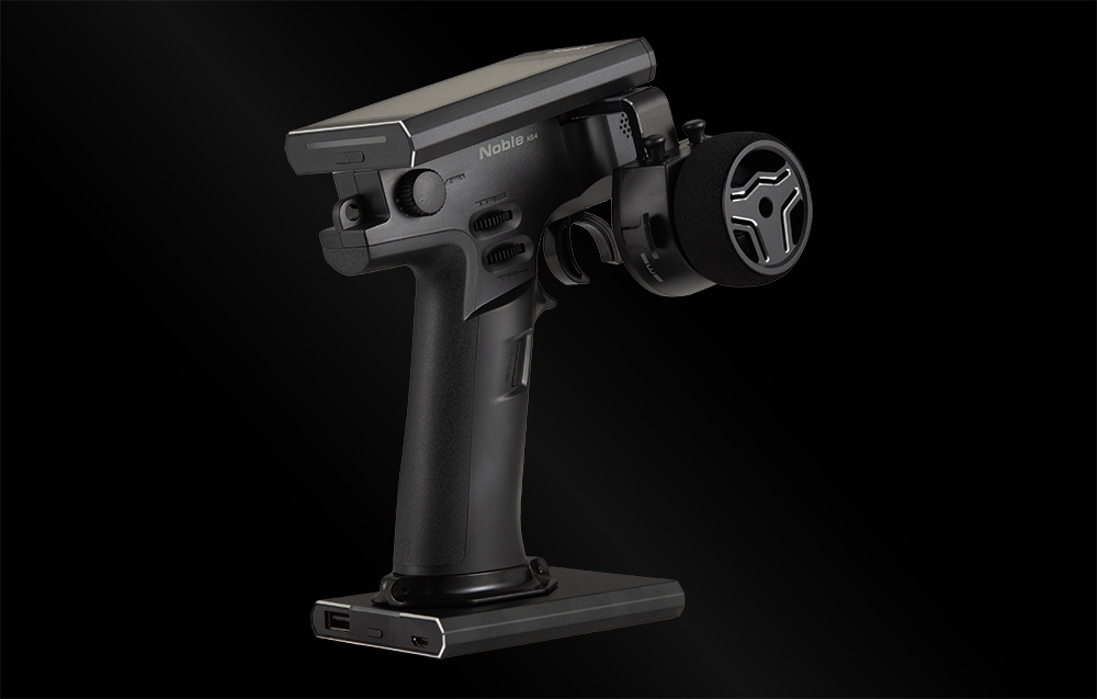 Трансмітер FlySky NB4 створений для дистанційно керованих автомобілів і човнів. Він підтримує протокол AFHDS 3, що забезпечує високу чутливість і затримку всього 3 мс. Він оснащений 3,5-дюймовим TFT-дисплеєм і ергономічним кермом, яке можна регулювати на 180°. Додатковою перевагою пристрою є спеціальна основа, яка забезпечує час роботи до 10 годин і може виконувати функцію павербанка. У комплект також входить приймач FGR4S.