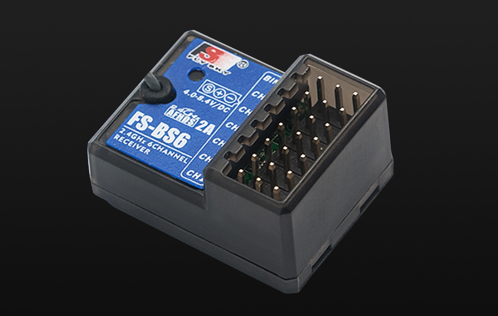приймач BS6, який є частиною набору, ідеально підходить для передавача GT5. Використовує технологію AFHDS 2A, що дозволяє безперешкодно та надійне з'єднання. Маючи 6 ШІМ каналів, приймач дозволяє широкий спектр конфігурації та управління над пристроєм.