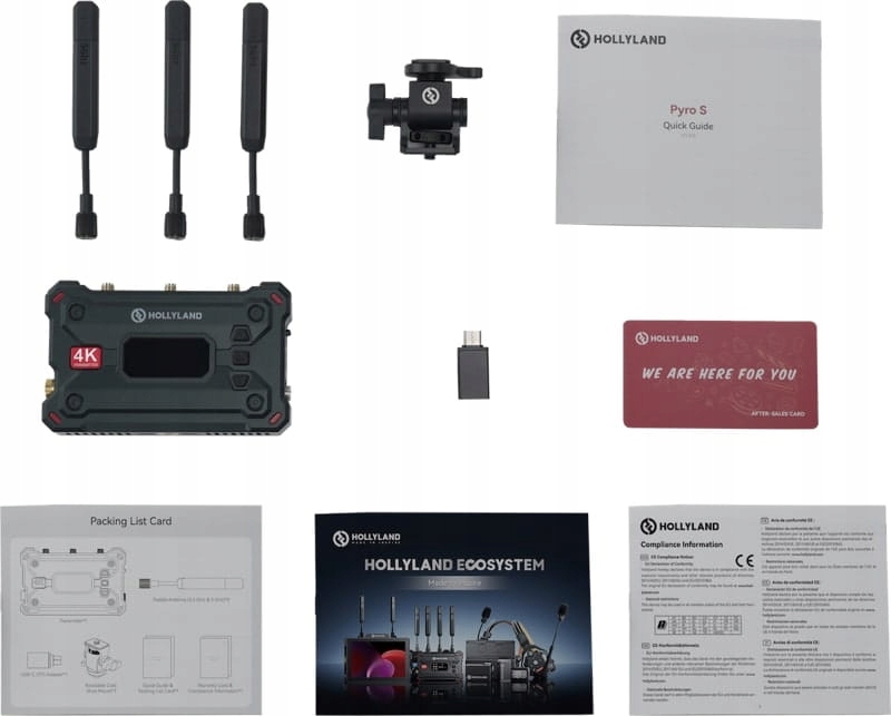 Передавач Hollyland Pyro S-RX є новаторським доповненням до серії Hollyland Pyro, яке переосмислює бездротову передачу відео. Pyro S підтримує входи/виходи HDMI і SDI і може одночасно передавати на чотири приймачі з радіусом дії до 400 м і мінімальною затримкою лише 50 мс.